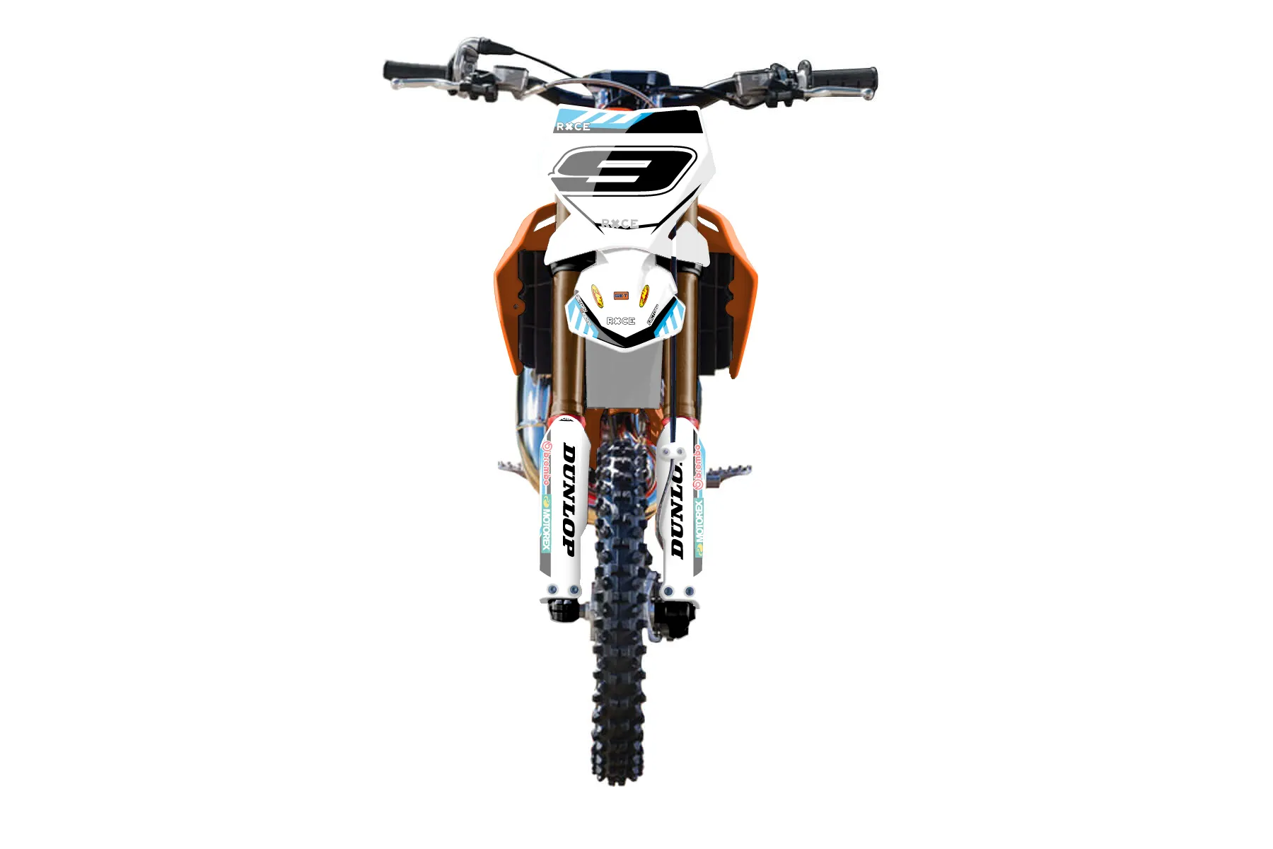 «Beyond» — готовый комплект графики серии Maverick для KTM MX Graphic Kit KTM SX 65 2016. В комплекте: графика на бак и боковые облицовки, крылья (переднее и заднее), передний щиток, номерные таблички, защита вилки. Материал: ПВХ-винил 80 мкр с холодной ламинацией 300 мкр, общая толщина 380 мкр; покрытие глянцевое или матовое на выбор. Устойчив к UV-излучению, воде, бензину и мойке высокого давления. Клей акриловый на сольвентной основе — постоянный, для гибких пластиков. На простых поверхностях монтируется без нагрева; для сложных изгибов рекомендуем фен. Этот пресет можно заказать как есть или взять за основу в конструкторе: поменять цвета, добавить стартовый номер и свой бренд. Производство — 3–5 рабочих дней, доставка по России СДЭКом или Почтой, по СНГ — курьерскими службами.
