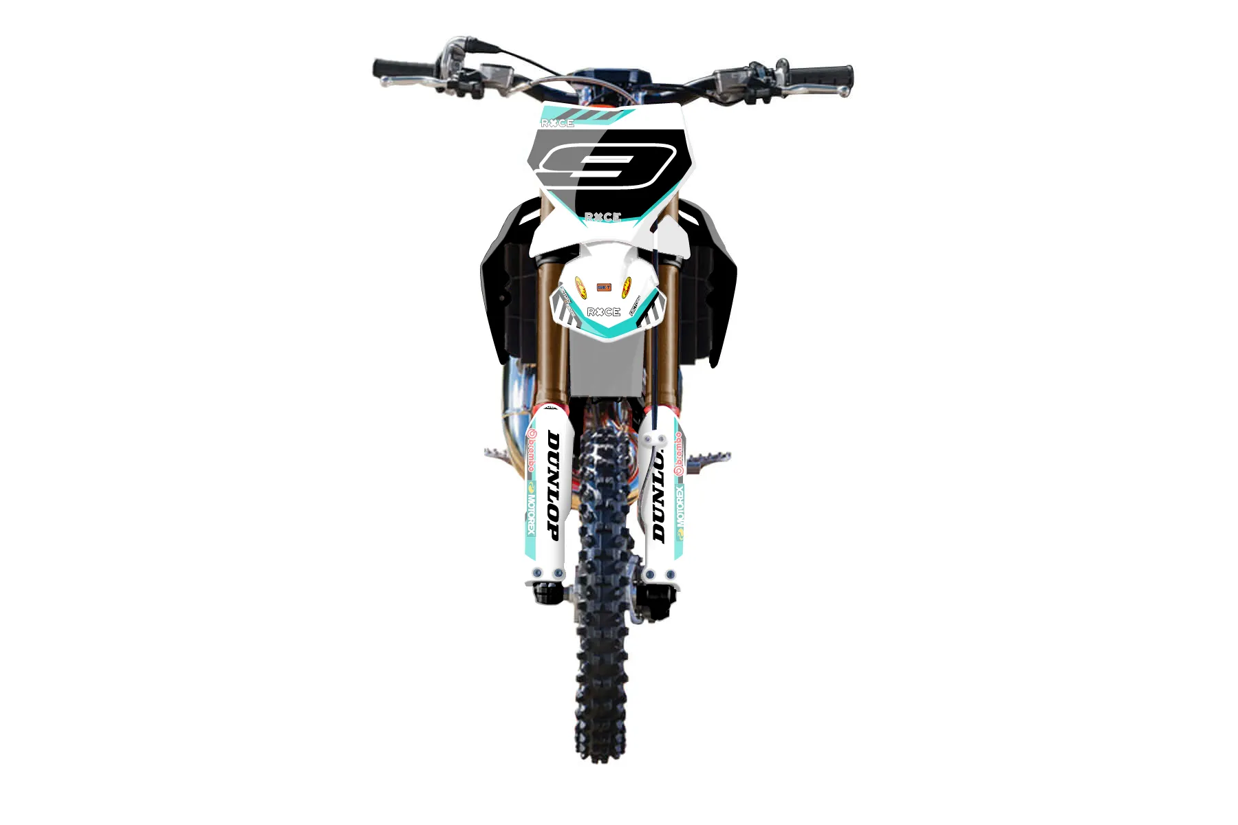«Bold» — готовый комплект графики серии Maverick для KTM MX Graphic Kit KTM SX 65 2016. В комплекте: графика на бак и боковые облицовки, крылья (переднее и заднее), передний щиток, номерные таблички, защита вилки. Материал: ПВХ-винил 80 мкр с холодной ламинацией 300 мкр, общая толщина 380 мкр; покрытие глянцевое или матовое на выбор. Устойчив к UV-излучению, воде, бензину и мойке высокого давления. Клей акриловый на сольвентной основе — постоянный, для гибких пластиков. На простых поверхностях монтируется без нагрева; для сложных изгибов рекомендуем фен. Этот пресет можно заказать как есть или взять за основу в конструкторе: поменять цвета, добавить стартовый номер и свой бренд. Производство — 3–5 рабочих дней, доставка по России СДЭКом или Почтой, по СНГ — курьерскими службами.