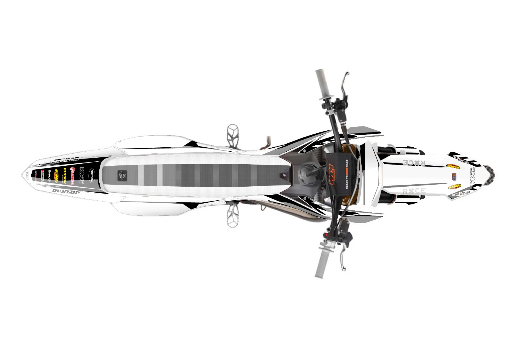 «Signature» — готовый комплект графики серии Maverick для KTM MX Graphic Kit KTM SX 65 2016. В комплекте: графика на бак и боковые облицовки, крылья (переднее и заднее), передний щиток, номерные таблички, защита вилки. Материал: ПВХ-винил 80 мкр с холодной ламинацией 300 мкр, общая толщина 380 мкр; покрытие глянцевое или матовое на выбор. Устойчив к UV-излучению, воде, бензину и мойке высокого давления. Клей акриловый на сольвентной основе — постоянный, для гибких пластиков. На простых поверхностях монтируется без нагрева; для сложных изгибов рекомендуем фен. Этот пресет можно заказать как есть или взять за основу в конструкторе: поменять цвета, добавить стартовый номер и свой бренд. Производство — 3–5 рабочих дней, доставка по России СДЭКом или Почтой, по СНГ — курьерскими службами.