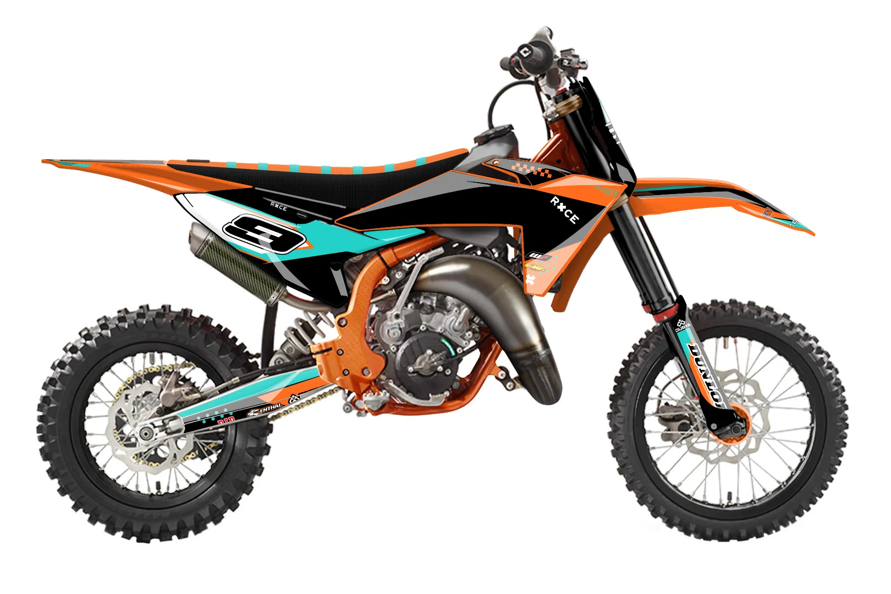 «Lathan» — готовый комплект графики серии Staple для KTM MX Graphic Kit KTM SX 65 2016. В комплекте: графика на бак и боковые облицовки, крылья (переднее и заднее), передний щиток, номерные таблички, защита вилки. Материал: ПВХ-винил 80 мкр с холодной ламинацией 300 мкр, общая толщина 380 мкр; покрытие глянцевое или матовое на выбор. Устойчив к UV-излучению, воде, бензину и мойке высокого давления. Клей акриловый на сольвентной основе — постоянный, для гибких пластиков. На простых поверхностях монтируется без нагрева; для сложных изгибов рекомендуем фен. Этот пресет можно заказать как есть или взять за основу в конструкторе: поменять цвета, добавить стартовый номер и свой бренд. Производство — 3–5 рабочих дней, доставка по России СДЭКом или Почтой, по СНГ — курьерскими службами.