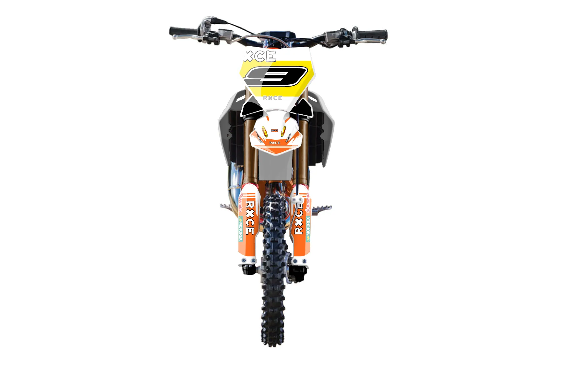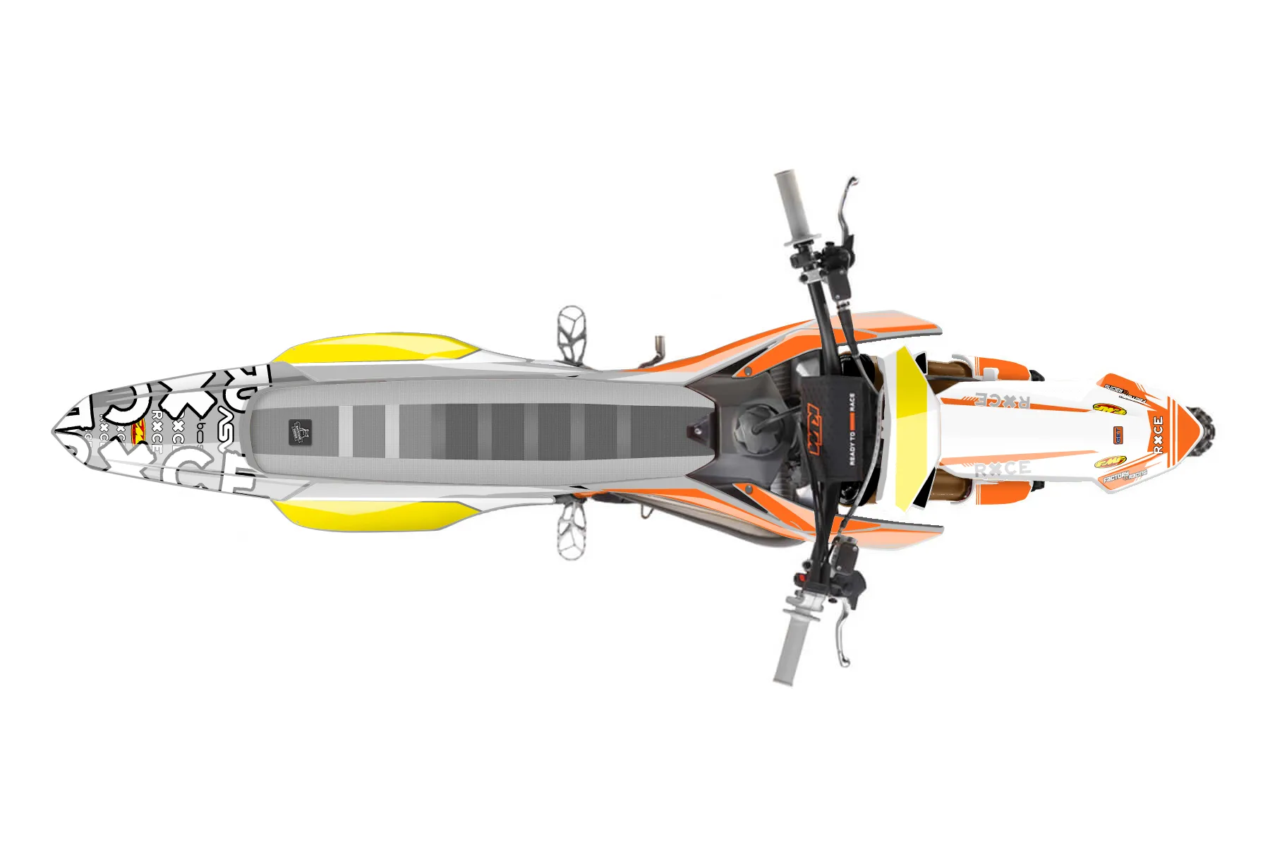 «Hunter's 65» — готовый комплект графики серии Untucked для KTM MX Graphic Kit KTM SX 65 2016. В комплекте: графика на бак и боковые облицовки, крылья (переднее и заднее), передний щиток, номерные таблички, защита вилки. Материал: ПВХ-винил 80 мкр с холодной ламинацией 300 мкр, общая толщина 380 мкр; покрытие глянцевое или матовое на выбор. Устойчив к UV-излучению, воде, бензину и мойке высокого давления. Клей акриловый на сольвентной основе — постоянный, для гибких пластиков. На простых поверхностях монтируется без нагрева; для сложных изгибов рекомендуем фен. Этот пресет можно заказать как есть или взять за основу в конструкторе: поменять цвета, добавить стартовый номер и свой бренд. Производство — 3–5 рабочих дней, доставка по России СДЭКом или Почтой, по СНГ — курьерскими службами.