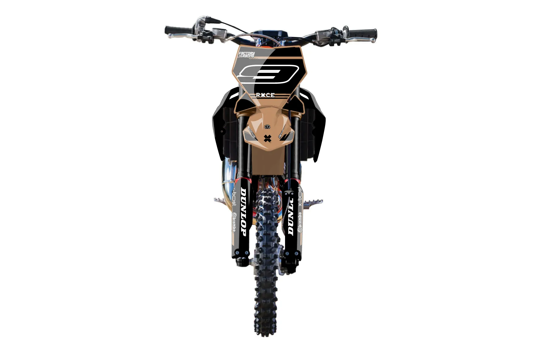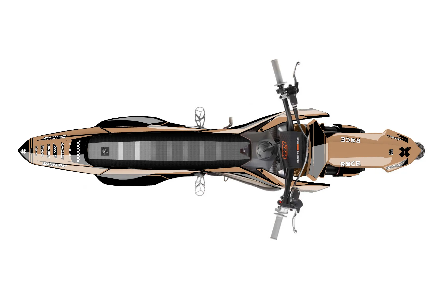 «Meta» — готовый комплект графики серии Untucked для KTM MX Graphic Kit KTM SX 65 2016. В комплекте: графика на бак и боковые облицовки, крылья (переднее и заднее), передний щиток, номерные таблички, защита вилки. Материал: ПВХ-винил 80 мкр с холодной ламинацией 300 мкр, общая толщина 380 мкр; покрытие глянцевое или матовое на выбор. Устойчив к UV-излучению, воде, бензину и мойке высокого давления. Клей акриловый на сольвентной основе — постоянный, для гибких пластиков. На простых поверхностях монтируется без нагрева; для сложных изгибов рекомендуем фен. Этот пресет можно заказать как есть или взять за основу в конструкторе: поменять цвета, добавить стартовый номер и свой бренд. Производство — 3–5 рабочих дней, доставка по России СДЭКом или Почтой, по СНГ — курьерскими службами.