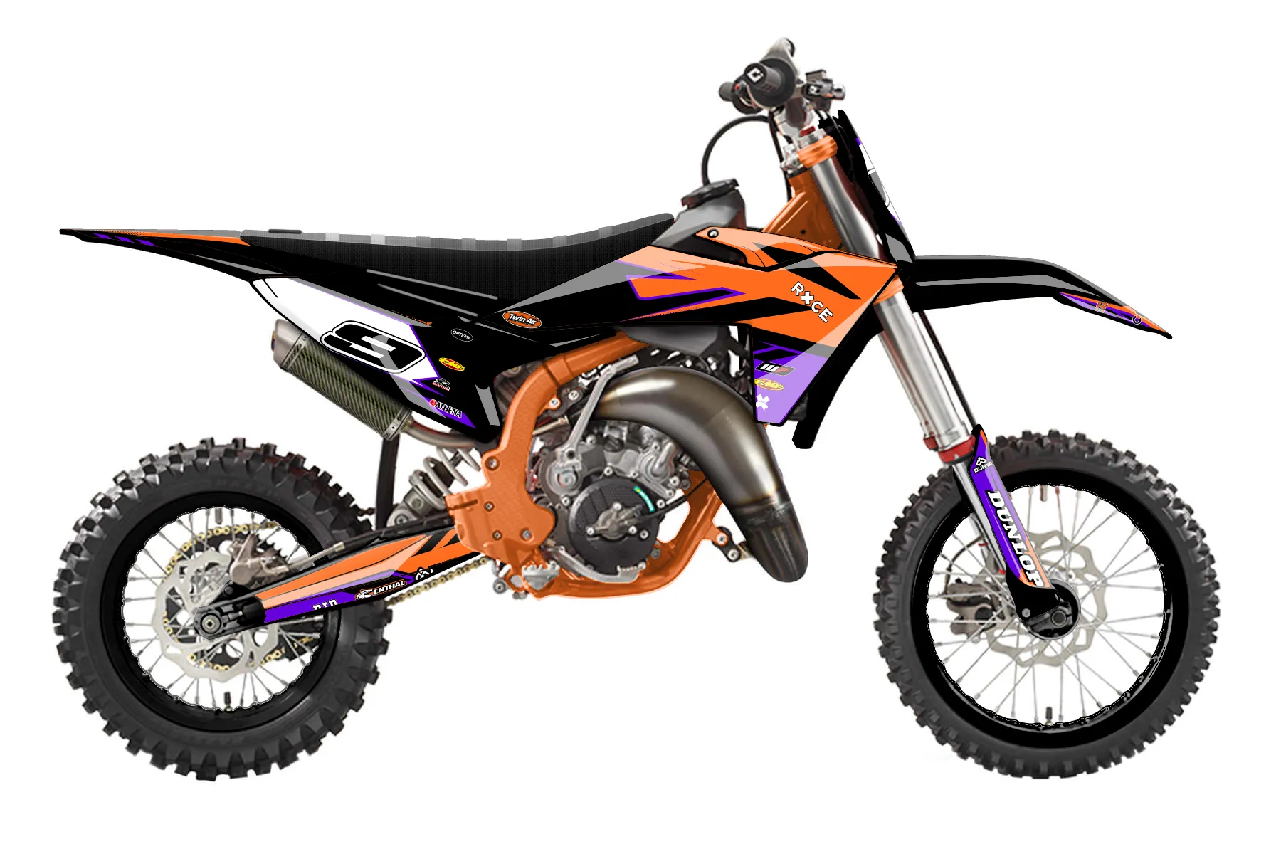 «Concepts» — готовый комплект графики серии Maverick для KTM MX Graphic Kit KTM SX 65 2020. В комплекте: графика на бак и боковые облицовки, крылья (переднее и заднее), передний щиток, номерные таблички, защита вилки. Материал: ПВХ-винил 80 мкр с холодной ламинацией 300 мкр, общая толщина 380 мкр; покрытие глянцевое или матовое на выбор. Устойчив к UV-излучению, воде, бензину и мойке высокого давления. Клей акриловый на сольвентной основе — постоянный, для гибких пластиков. На простых поверхностях монтируется без нагрева; для сложных изгибов рекомендуем фен. Этот пресет можно заказать как есть или взять за основу в конструкторе: поменять цвета, добавить стартовый номер и свой бренд. Производство — 3–5 рабочих дней, доставка по России СДЭКом или Почтой, по СНГ — курьерскими службами.