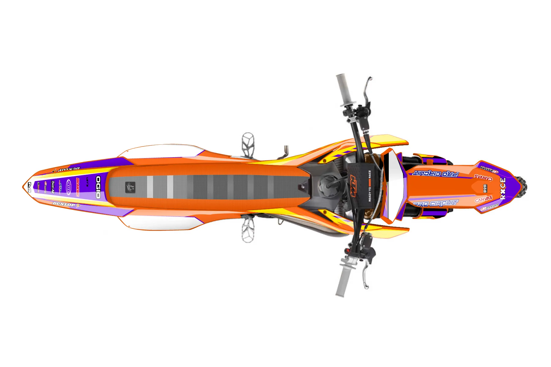 «roczen2026-2» — готовый комплект графики серии Maverick для KTM MX Graphic Kit KTM SX 65 2020. В комплекте: графика на бак и боковые облицовки, крылья (переднее и заднее), передний щиток, номерные таблички, защита вилки. Материал: ПВХ-винил 80 мкр с холодной ламинацией 300 мкр, общая толщина 380 мкр; покрытие глянцевое или матовое на выбор. Устойчив к UV-излучению, воде, бензину и мойке высокого давления. Клей акриловый на сольвентной основе — постоянный, для гибких пластиков. На простых поверхностях монтируется без нагрева; для сложных изгибов рекомендуем фен. Этот пресет можно заказать как есть или взять за основу в конструкторе: поменять цвета, добавить стартовый номер и свой бренд. Производство — 3–5 рабочих дней, доставка по России СДЭКом или Почтой, по СНГ — курьерскими службами.