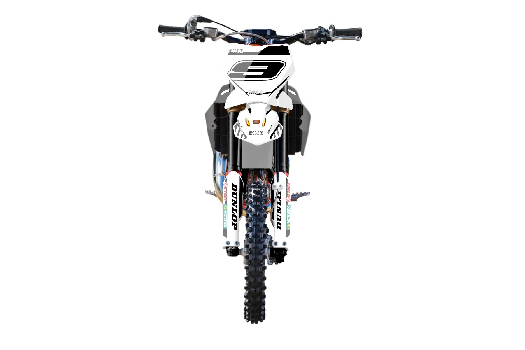 «Signature» — готовый комплект графики серии Maverick для KTM MX Graphic Kit KTM SX 65 2020. В комплекте: графика на бак и боковые облицовки, крылья (переднее и заднее), передний щиток, номерные таблички, защита вилки. Материал: ПВХ-винил 80 мкр с холодной ламинацией 300 мкр, общая толщина 380 мкр; покрытие глянцевое или матовое на выбор. Устойчив к UV-излучению, воде, бензину и мойке высокого давления. Клей акриловый на сольвентной основе — постоянный, для гибких пластиков. На простых поверхностях монтируется без нагрева; для сложных изгибов рекомендуем фен. Этот пресет можно заказать как есть или взять за основу в конструкторе: поменять цвета, добавить стартовый номер и свой бренд. Производство — 3–5 рабочих дней, доставка по России СДЭКом или Почтой, по СНГ — курьерскими службами.
