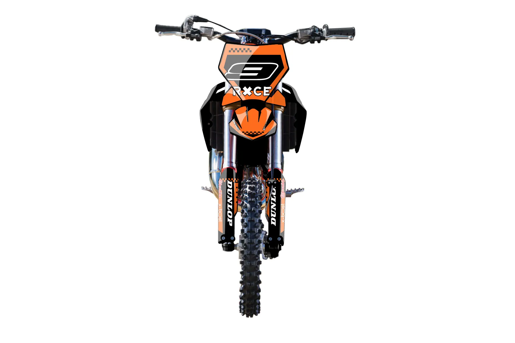 «corbin» — готовый комплект графики серии Staple для KTM MX Graphic Kit KTM SX 65 2020. В комплекте: графика на бак и боковые облицовки, крылья (переднее и заднее), передний щиток, номерные таблички, защита вилки. Материал: ПВХ-винил 80 мкр с холодной ламинацией 300 мкр, общая толщина 380 мкр; покрытие глянцевое или матовое на выбор. Устойчив к UV-излучению, воде, бензину и мойке высокого давления. Клей акриловый на сольвентной основе — постоянный, для гибких пластиков. На простых поверхностях монтируется без нагрева; для сложных изгибов рекомендуем фен. Этот пресет можно заказать как есть или взять за основу в конструкторе: поменять цвета, добавить стартовый номер и свой бренд. Производство — 3–5 рабочих дней, доставка по России СДЭКом или Почтой, по СНГ — курьерскими службами.