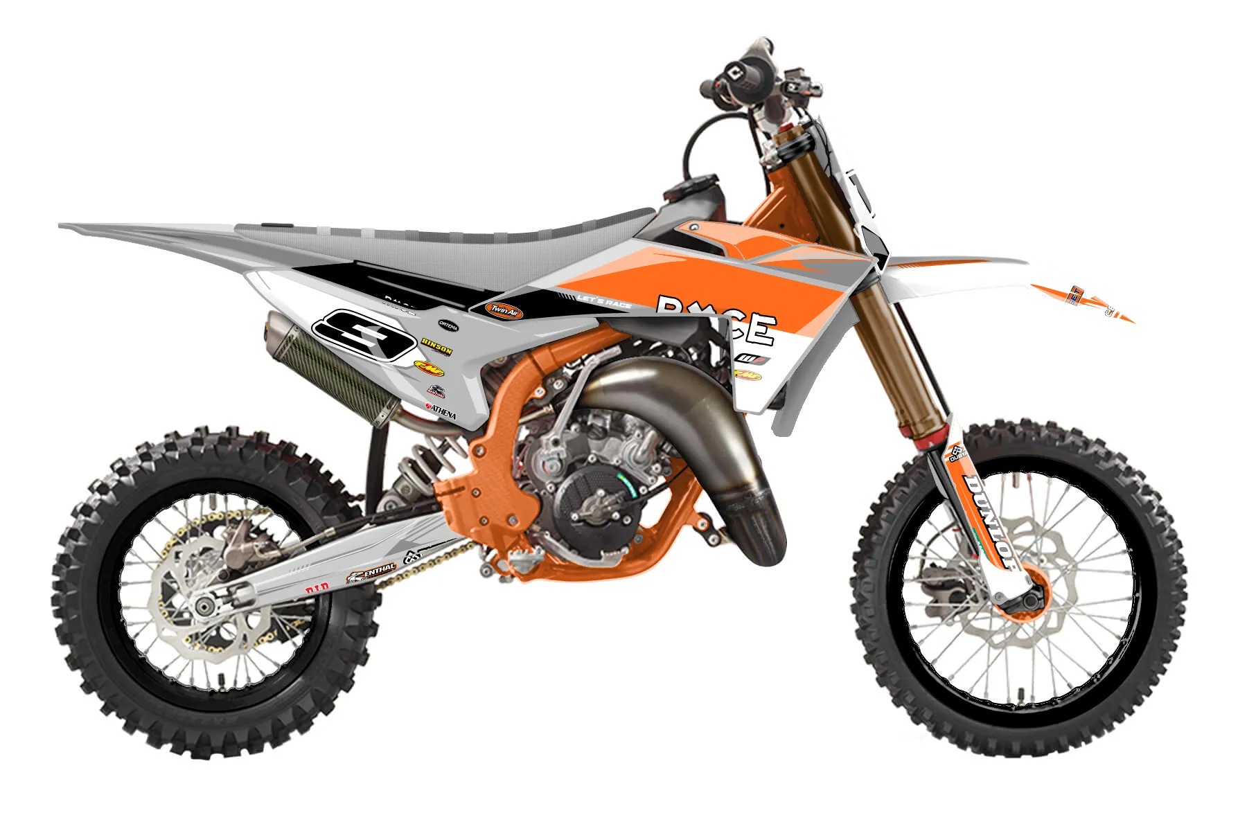 «Answer» — готовый комплект графики серии Untucked для KTM MX Graphic Kit KTM SX 65 2020. В комплекте: графика на бак и боковые облицовки, крылья (переднее и заднее), передний щиток, номерные таблички, защита вилки. Материал: ПВХ-винил 80 мкр с холодной ламинацией 300 мкр, общая толщина 380 мкр; покрытие глянцевое или матовое на выбор. Устойчив к UV-излучению, воде, бензину и мойке высокого давления. Клей акриловый на сольвентной основе — постоянный, для гибких пластиков. На простых поверхностях монтируется без нагрева; для сложных изгибов рекомендуем фен. Этот пресет можно заказать как есть или взять за основу в конструкторе: поменять цвета, добавить стартовый номер и свой бренд. Производство — 3–5 рабочих дней, доставка по России СДЭКом или Почтой, по СНГ — курьерскими службами.