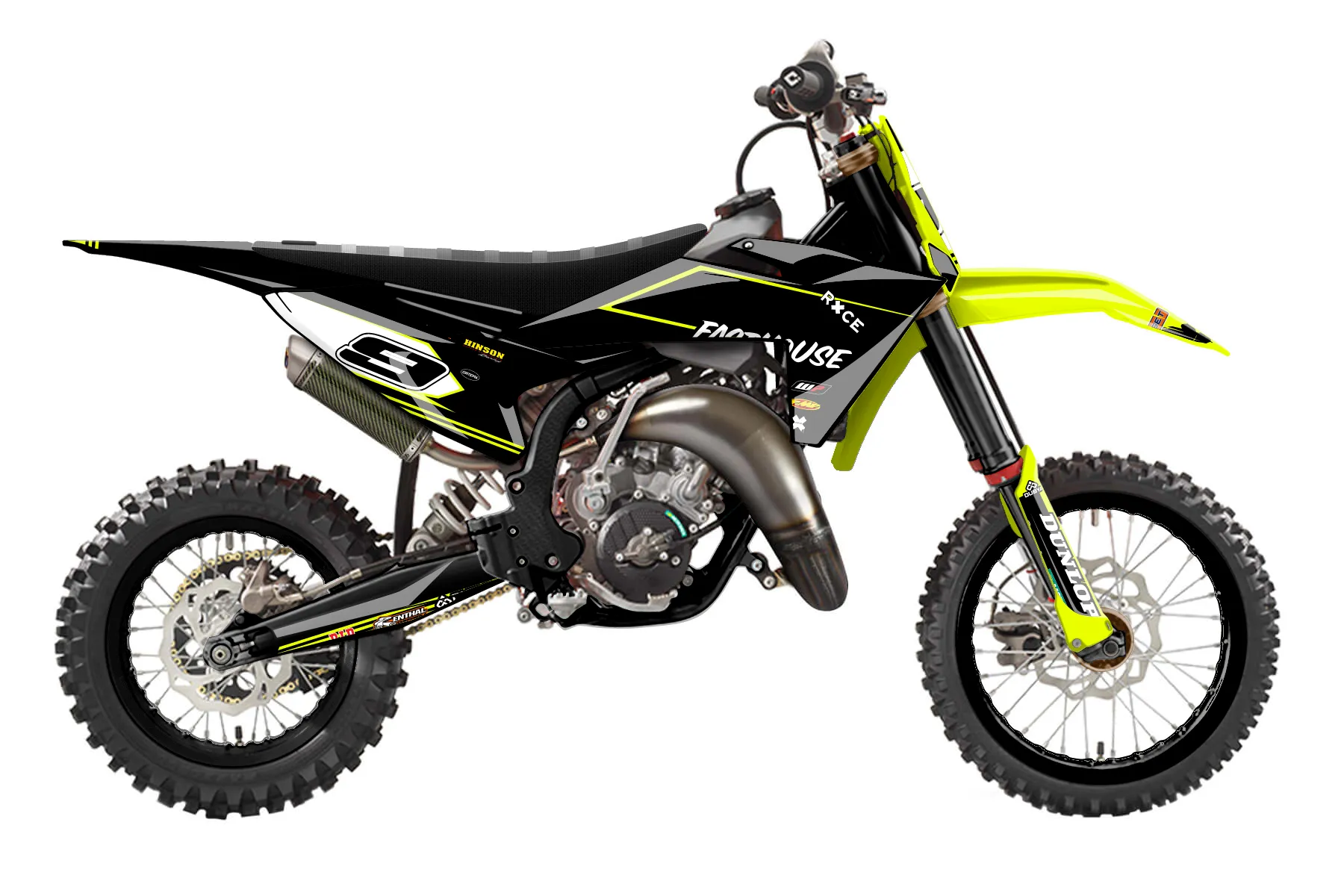 «DesignHouse» — готовый комплект графики серии Untucked для KTM MX Graphic Kit KTM SX 65 2020. В комплекте: графика на бак и боковые облицовки, крылья (переднее и заднее), передний щиток, номерные таблички, защита вилки. Материал: ПВХ-винил 80 мкр с холодной ламинацией 300 мкр, общая толщина 380 мкр; покрытие глянцевое или матовое на выбор. Устойчив к UV-излучению, воде, бензину и мойке высокого давления. Клей акриловый на сольвентной основе — постоянный, для гибких пластиков. На простых поверхностях монтируется без нагрева; для сложных изгибов рекомендуем фен. Этот пресет можно заказать как есть или взять за основу в конструкторе: поменять цвета, добавить стартовый номер и свой бренд. Производство — 3–5 рабочих дней, доставка по России СДЭКом или Почтой, по СНГ — курьерскими службами.