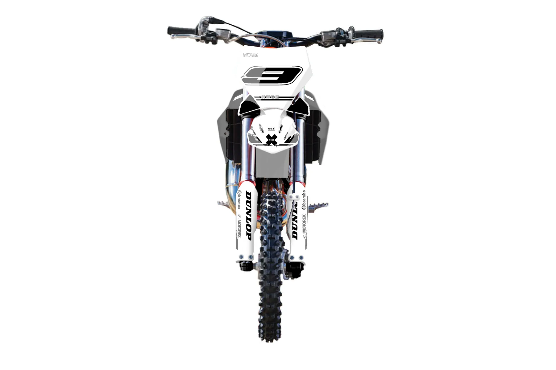 «Speedhouse» — готовый комплект графики серии Untucked для KTM MX Graphic Kit KTM SX 65 2020. В комплекте: графика на бак и боковые облицовки, крылья (переднее и заднее), передний щиток, номерные таблички, защита вилки. Материал: ПВХ-винил 80 мкр с холодной ламинацией 300 мкр, общая толщина 380 мкр; покрытие глянцевое или матовое на выбор. Устойчив к UV-излучению, воде, бензину и мойке высокого давления. Клей акриловый на сольвентной основе — постоянный, для гибких пластиков. На простых поверхностях монтируется без нагрева; для сложных изгибов рекомендуем фен. Этот пресет можно заказать как есть или взять за основу в конструкторе: поменять цвета, добавить стартовый номер и свой бренд. Производство — 3–5 рабочих дней, доставка по России СДЭКом или Почтой, по СНГ — курьерскими службами.