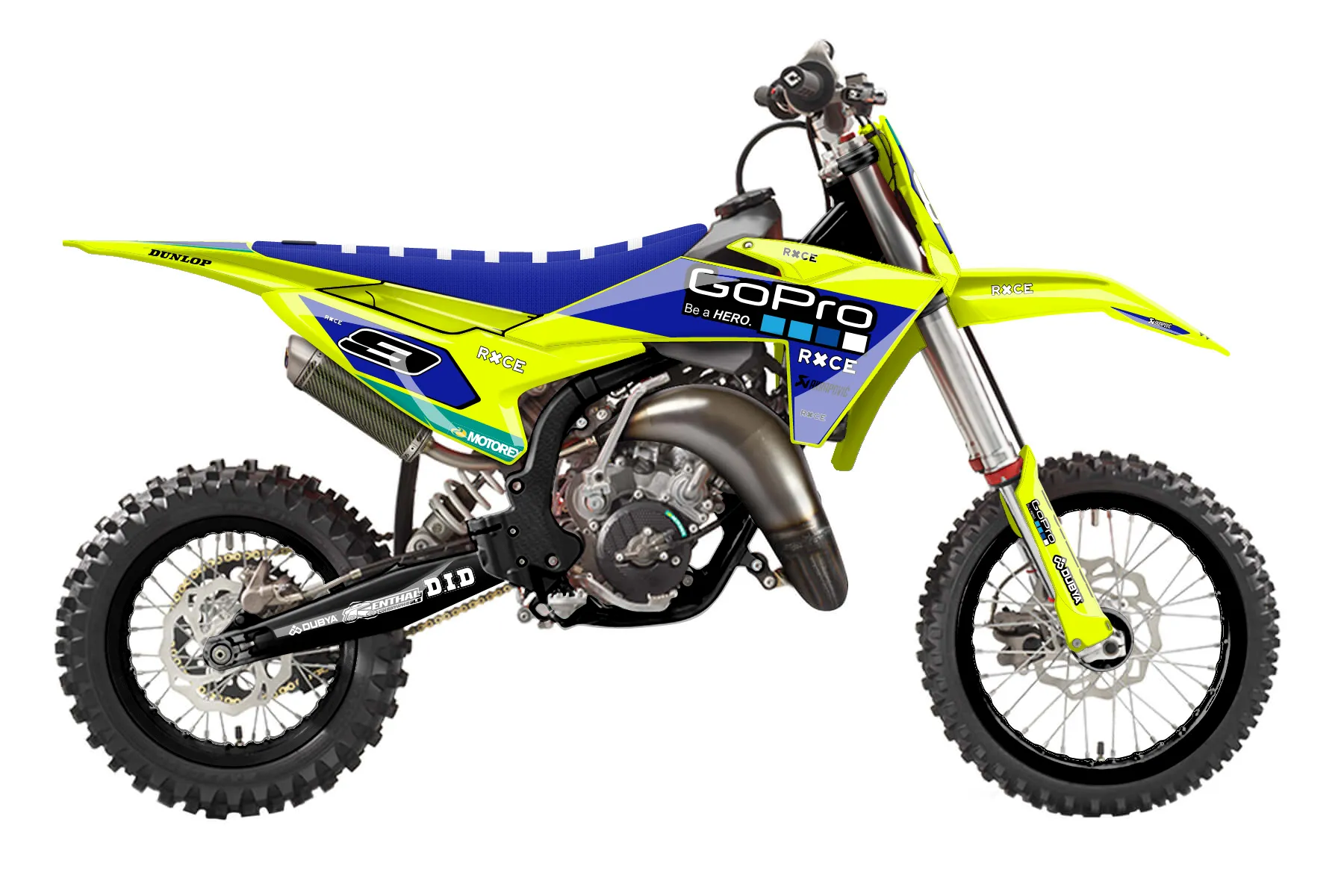 «Brilliant Neon» — готовый комплект графики серии Flow для KTM MX Graphic Kit KTM SX 65 2024. В комплекте: графика на бак и боковые облицовки, крылья (переднее и заднее), передний щиток, номерные таблички, защита вилки. Материал: ПВХ-винил 80 мкр с холодной ламинацией 300 мкр, общая толщина 380 мкр; покрытие глянцевое или матовое на выбор. Устойчив к UV-излучению, воде, бензину и мойке высокого давления. Клей акриловый на сольвентной основе — постоянный, для гибких пластиков. На простых поверхностях монтируется без нагрева; для сложных изгибов рекомендуем фен. Этот пресет можно заказать как есть или взять за основу в конструкторе: поменять цвета, добавить стартовый номер и свой бренд. Производство — 3–5 рабочих дней, доставка по России СДЭКом или Почтой, по СНГ — курьерскими службами.