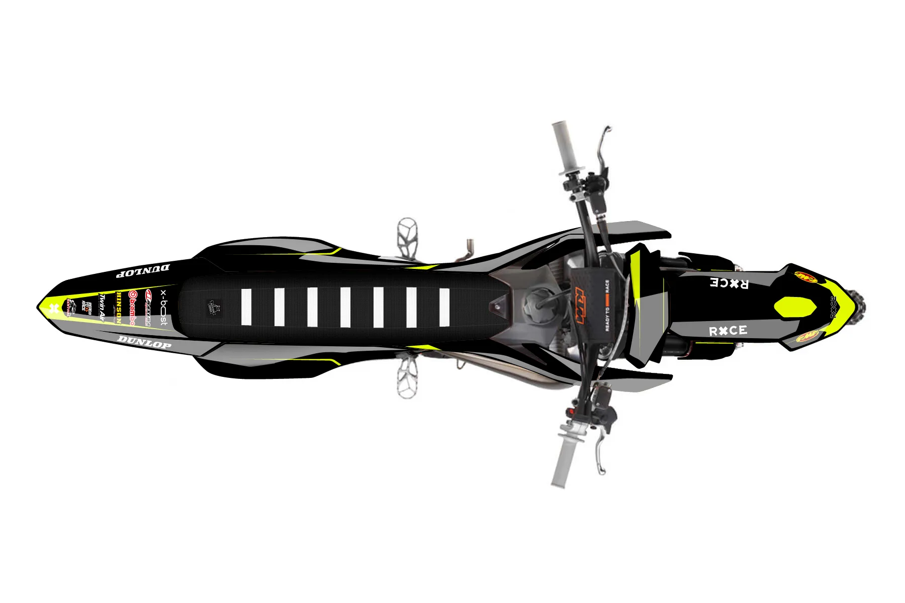 «Form» — готовый комплект графики серии Flow для KTM MX Graphic Kit KTM SX 65 2024. В комплекте: графика на бак и боковые облицовки, крылья (переднее и заднее), передний щиток, номерные таблички, защита вилки. Материал: ПВХ-винил 80 мкр с холодной ламинацией 300 мкр, общая толщина 380 мкр; покрытие глянцевое или матовое на выбор. Устойчив к UV-излучению, воде, бензину и мойке высокого давления. Клей акриловый на сольвентной основе — постоянный, для гибких пластиков. На простых поверхностях монтируется без нагрева; для сложных изгибов рекомендуем фен. Этот пресет можно заказать как есть или взять за основу в конструкторе: поменять цвета, добавить стартовый номер и свой бренд. Производство — 3–5 рабочих дней, доставка по России СДЭКом или Почтой, по СНГ — курьерскими службами.