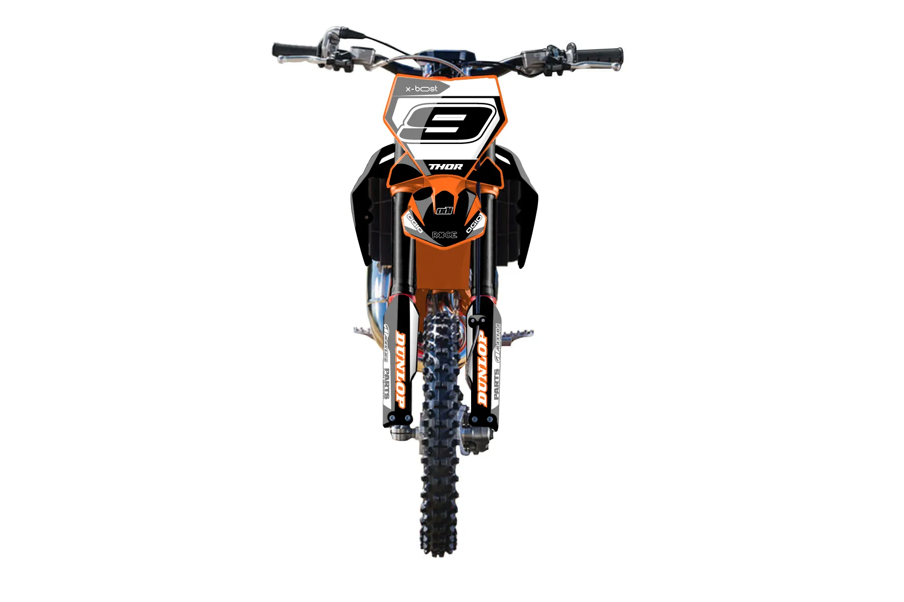 «ktm 65 » — готовый комплект графики серии Flow для KTM MX Graphic Kit KTM SX 65 2024. В комплекте: графика на бак и боковые облицовки, крылья (переднее и заднее), передний щиток, номерные таблички, защита вилки. Материал: ПВХ-винил 80 мкр с холодной ламинацией 300 мкр, общая толщина 380 мкр; покрытие глянцевое или матовое на выбор. Устойчив к UV-излучению, воде, бензину и мойке высокого давления. Клей акриловый на сольвентной основе — постоянный, для гибких пластиков. На простых поверхностях монтируется без нагрева; для сложных изгибов рекомендуем фен. Этот пресет можно заказать как есть или взять за основу в конструкторе: поменять цвета, добавить стартовый номер и свой бренд. Производство — 3–5 рабочих дней, доставка по России СДЭКом или Почтой, по СНГ — курьерскими службами.