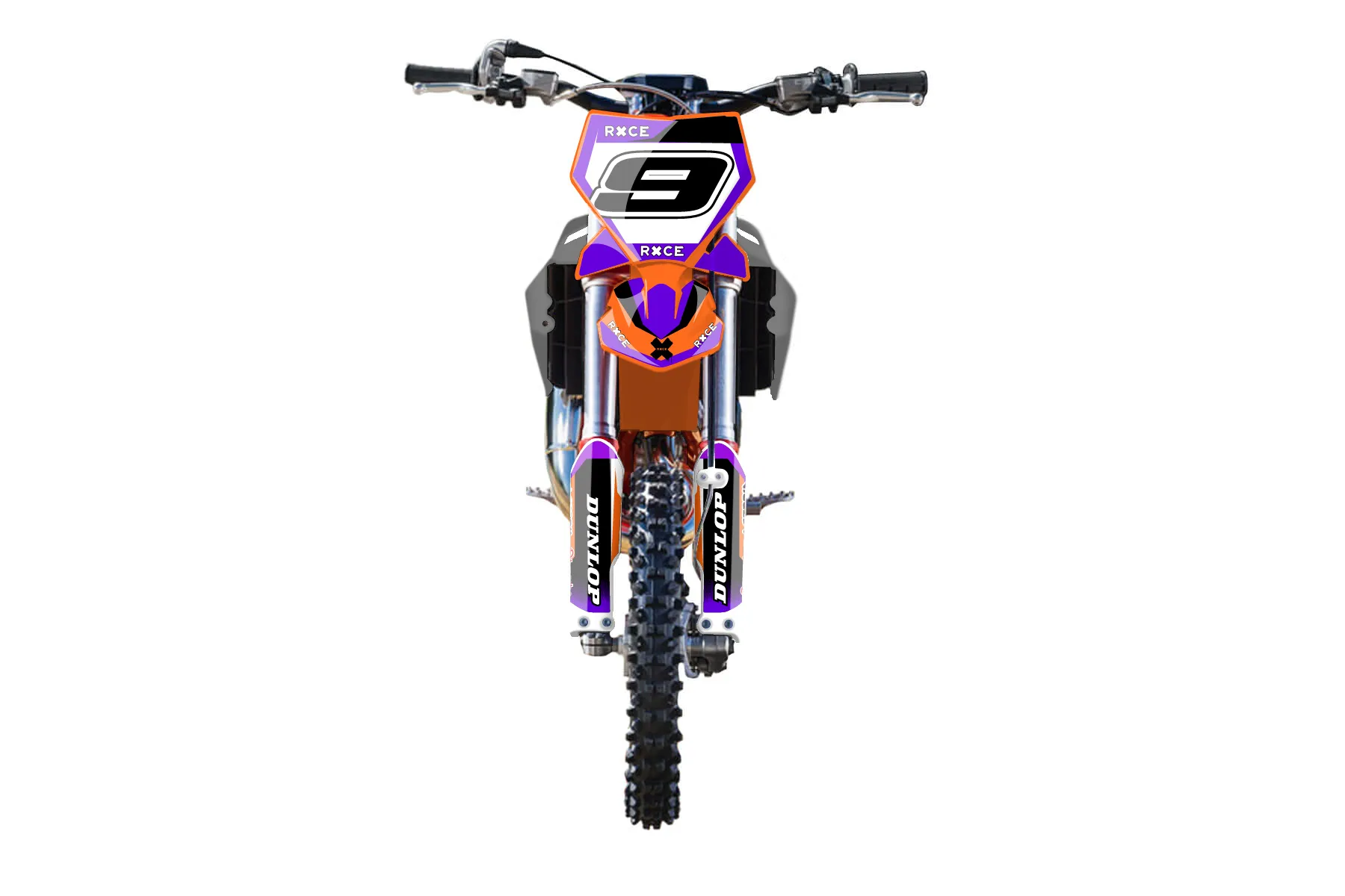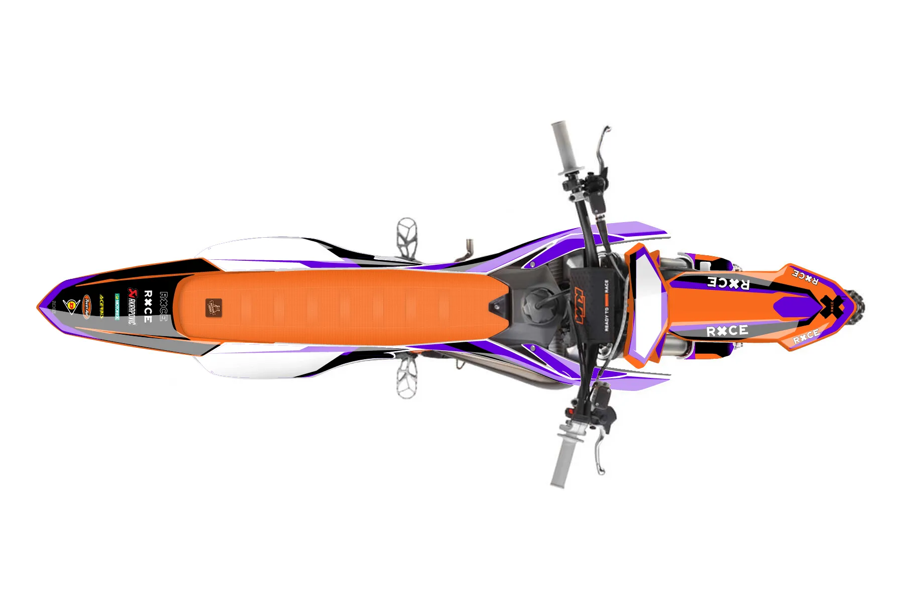 «2024 KTM » — готовый комплект графики серии Fusion для KTM MX Graphic Kit KTM SX 65 2024. В комплекте: графика на бак и боковые облицовки, крылья (переднее и заднее), передний щиток, номерные таблички, защита вилки. Материал: ПВХ-винил 80 мкр с холодной ламинацией 300 мкр, общая толщина 380 мкр; покрытие глянцевое или матовое на выбор. Устойчив к UV-излучению, воде, бензину и мойке высокого давления. Клей акриловый на сольвентной основе — постоянный, для гибких пластиков. На простых поверхностях монтируется без нагрева; для сложных изгибов рекомендуем фен. Этот пресет можно заказать как есть или взять за основу в конструкторе: поменять цвета, добавить стартовый номер и свой бренд. Производство — 3–5 рабочих дней, доставка по России СДЭКом или Почтой, по СНГ — курьерскими службами.