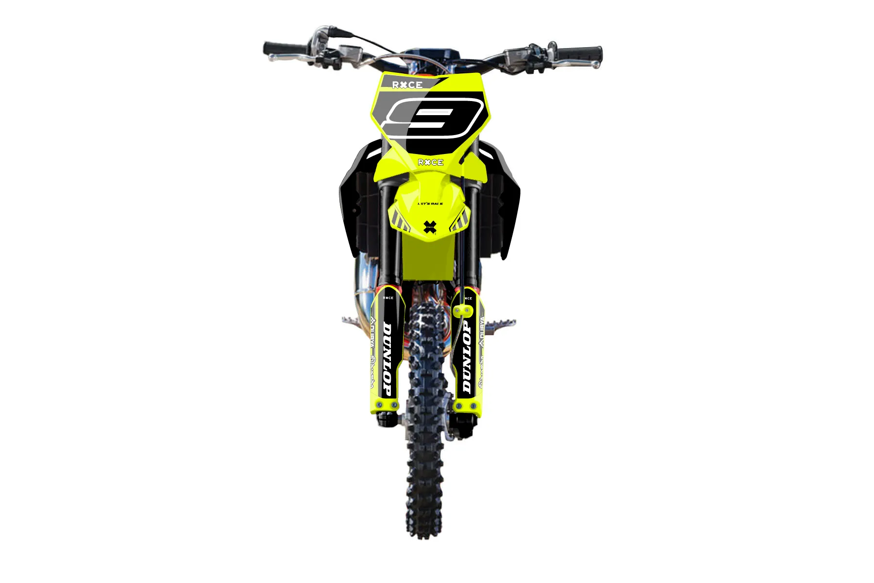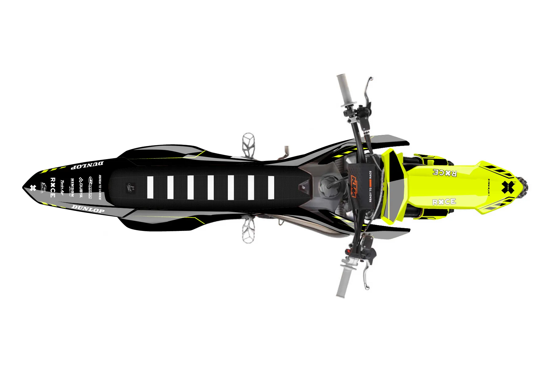 «Kitted Neon» — готовый комплект графики серии Maverick для KTM MX Graphic Kit KTM SX 65 2024. В комплекте: графика на бак и боковые облицовки, крылья (переднее и заднее), передний щиток, номерные таблички, защита вилки. Материал: ПВХ-винил 80 мкр с холодной ламинацией 300 мкр, общая толщина 380 мкр; покрытие глянцевое или матовое на выбор. Устойчив к UV-излучению, воде, бензину и мойке высокого давления. Клей акриловый на сольвентной основе — постоянный, для гибких пластиков. На простых поверхностях монтируется без нагрева; для сложных изгибов рекомендуем фен. Этот пресет можно заказать как есть или взять за основу в конструкторе: поменять цвета, добавить стартовый номер и свой бренд. Производство — 3–5 рабочих дней, доставка по России СДЭКом или Почтой, по СНГ — курьерскими службами.