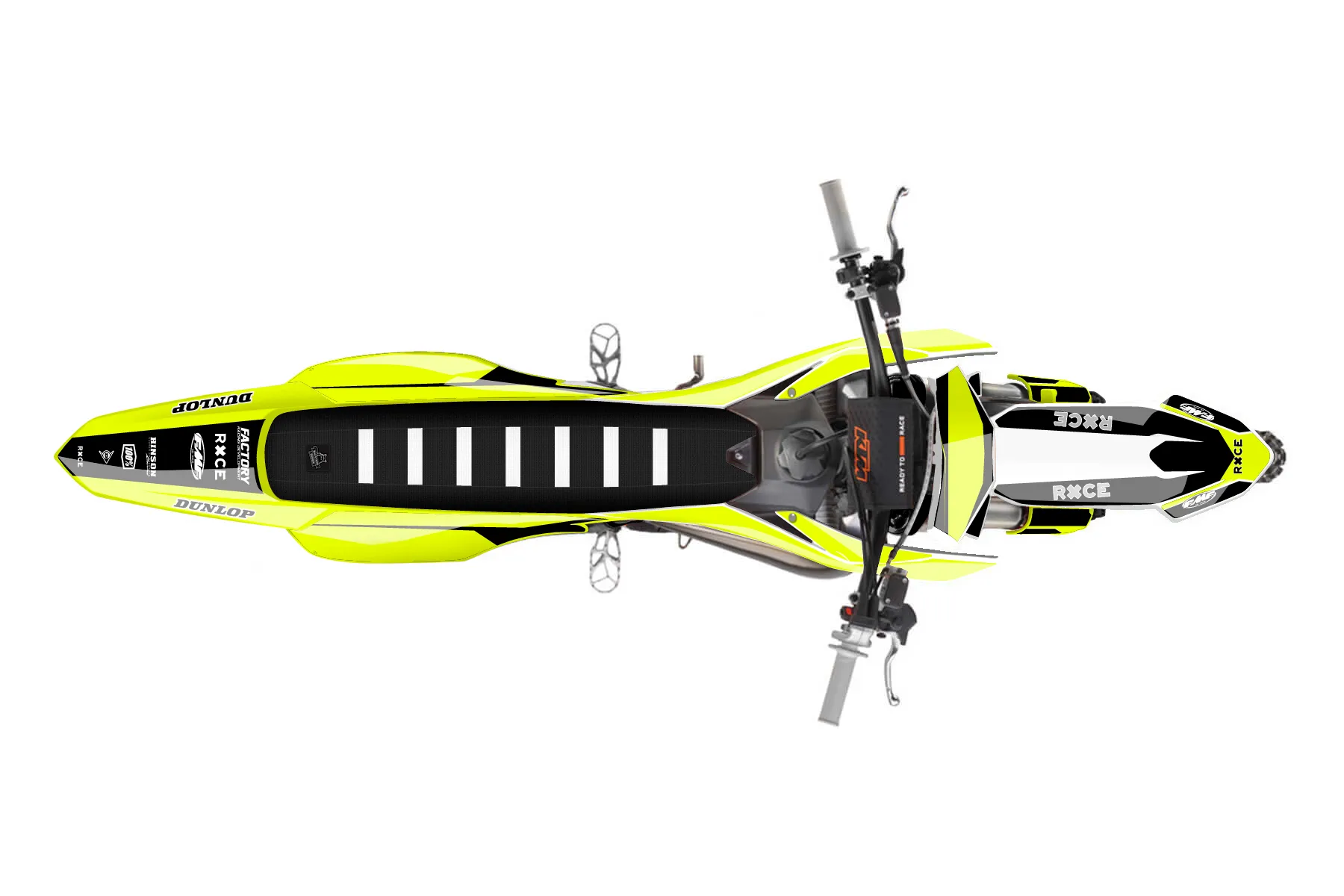 «Ryder Neon» — готовый комплект графики серии Maverick для KTM MX Graphic Kit KTM SX 65 2024. В комплекте: графика на бак и боковые облицовки, крылья (переднее и заднее), передний щиток, номерные таблички, защита вилки. Материал: ПВХ-винил 80 мкр с холодной ламинацией 300 мкр, общая толщина 380 мкр; покрытие глянцевое или матовое на выбор. Устойчив к UV-излучению, воде, бензину и мойке высокого давления. Клей акриловый на сольвентной основе — постоянный, для гибких пластиков. На простых поверхностях монтируется без нагрева; для сложных изгибов рекомендуем фен. Этот пресет можно заказать как есть или взять за основу в конструкторе: поменять цвета, добавить стартовый номер и свой бренд. Производство — 3–5 рабочих дней, доставка по России СДЭКом или Почтой, по СНГ — курьерскими службами.