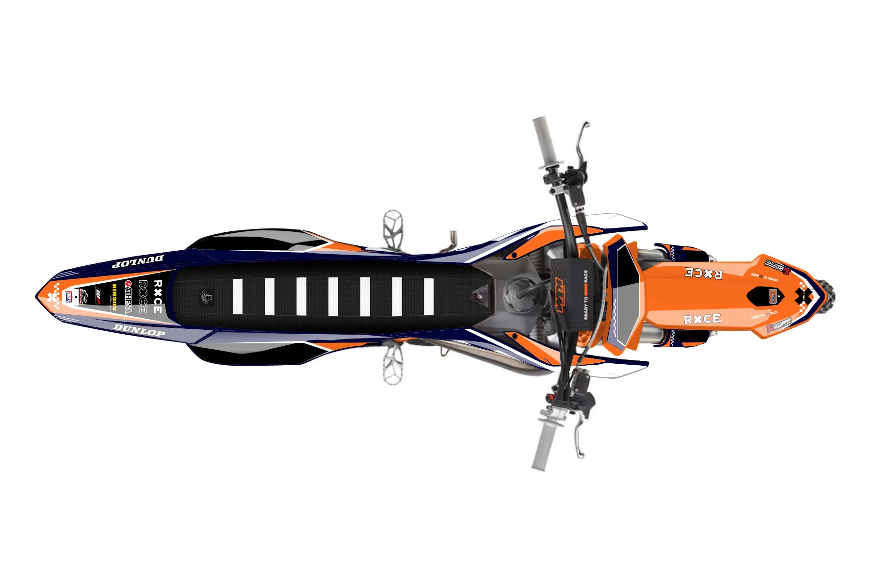 «Rage» — готовый комплект графики серии Staple для KTM MX Graphic Kit KTM SX 65 2024. В комплекте: графика на бак и боковые облицовки, крылья (переднее и заднее), передний щиток, номерные таблички, защита вилки. Материал: ПВХ-винил 80 мкр с холодной ламинацией 300 мкр, общая толщина 380 мкр; покрытие глянцевое или матовое на выбор. Устойчив к UV-излучению, воде, бензину и мойке высокого давления. Клей акриловый на сольвентной основе — постоянный, для гибких пластиков. На простых поверхностях монтируется без нагрева; для сложных изгибов рекомендуем фен. Этот пресет можно заказать как есть или взять за основу в конструкторе: поменять цвета, добавить стартовый номер и свой бренд. Производство — 3–5 рабочих дней, доставка по России СДЭКом или Почтой, по СНГ — курьерскими службами.