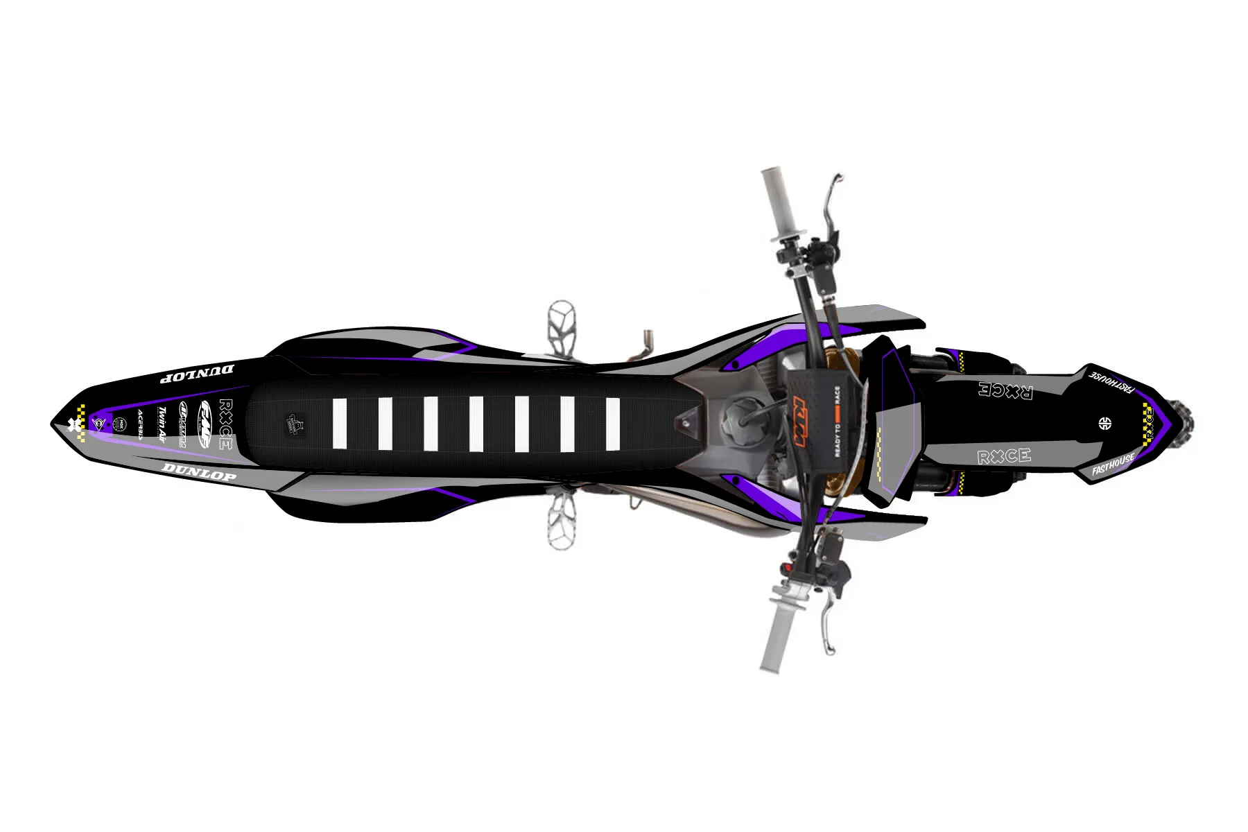 «Virtual» — готовый комплект графики серии Staple для KTM MX Graphic Kit KTM SX 65 2024. В комплекте: графика на бак и боковые облицовки, крылья (переднее и заднее), передний щиток, номерные таблички, защита вилки. Материал: ПВХ-винил 80 мкр с холодной ламинацией 300 мкр, общая толщина 380 мкр; покрытие глянцевое или матовое на выбор. Устойчив к UV-излучению, воде, бензину и мойке высокого давления. Клей акриловый на сольвентной основе — постоянный, для гибких пластиков. На простых поверхностях монтируется без нагрева; для сложных изгибов рекомендуем фен. Этот пресет можно заказать как есть или взять за основу в конструкторе: поменять цвета, добавить стартовый номер и свой бренд. Производство — 3–5 рабочих дней, доставка по России СДЭКом или Почтой, по СНГ — курьерскими службами.