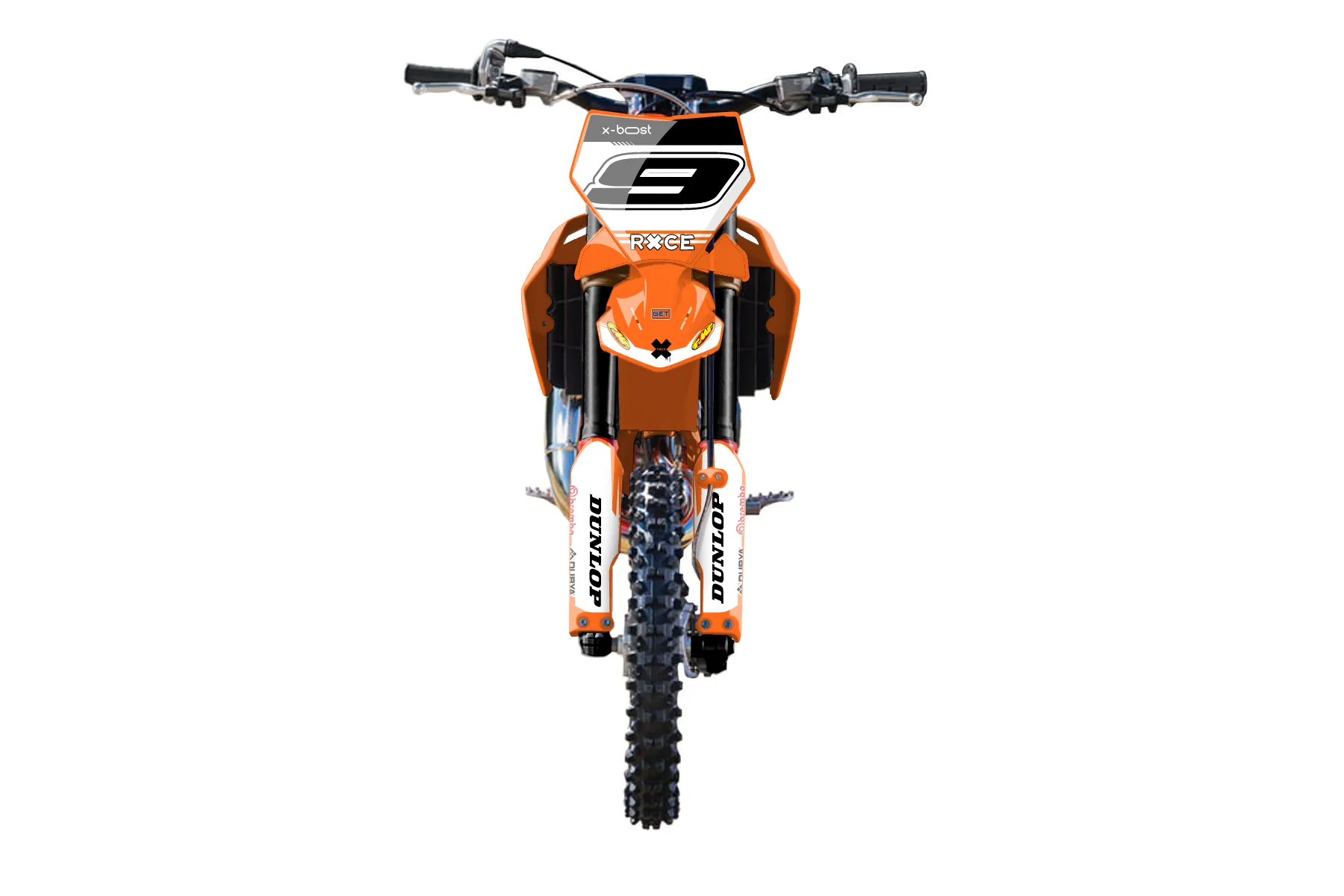 «Total» — готовый комплект графики серии Untucked для KTM MX Graphic Kit KTM SX 65 2024. В комплекте: графика на бак и боковые облицовки, крылья (переднее и заднее), передний щиток, номерные таблички, защита вилки. Материал: ПВХ-винил 80 мкр с холодной ламинацией 300 мкр, общая толщина 380 мкр; покрытие глянцевое или матовое на выбор. Устойчив к UV-излучению, воде, бензину и мойке высокого давления. Клей акриловый на сольвентной основе — постоянный, для гибких пластиков. На простых поверхностях монтируется без нагрева; для сложных изгибов рекомендуем фен. Этот пресет можно заказать как есть или взять за основу в конструкторе: поменять цвета, добавить стартовый номер и свой бренд. Производство — 3–5 рабочих дней, доставка по России СДЭКом или Почтой, по СНГ — курьерскими службами.