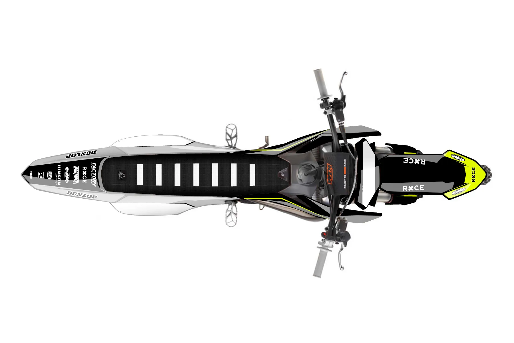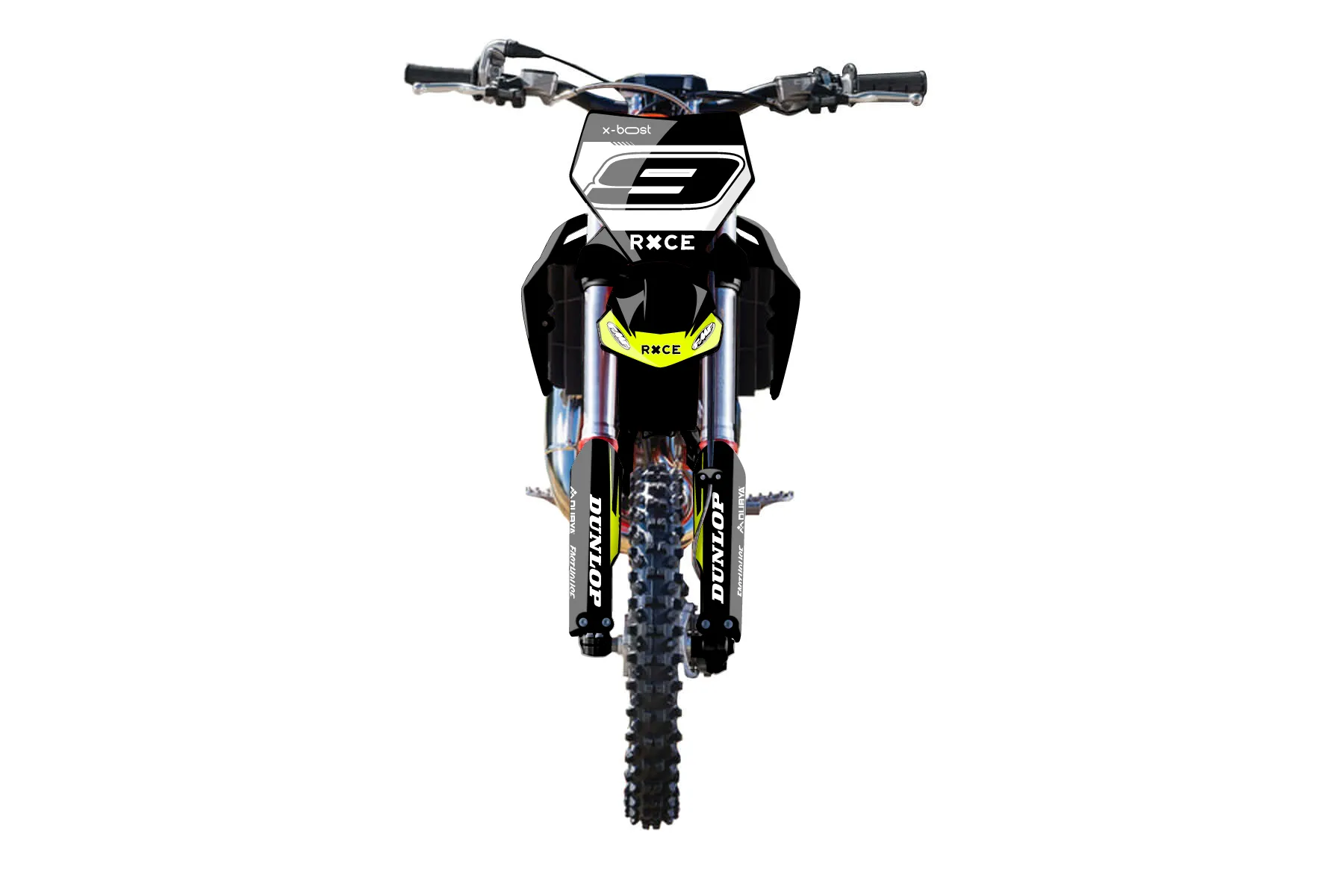 «Vivid Neon» — готовый комплект графики серии Untucked для KTM MX Graphic Kit KTM SX 65 2024. В комплекте: графика на бак и боковые облицовки, крылья (переднее и заднее), передний щиток, номерные таблички, защита вилки. Материал: ПВХ-винил 80 мкр с холодной ламинацией 300 мкр, общая толщина 380 мкр; покрытие глянцевое или матовое на выбор. Устойчив к UV-излучению, воде, бензину и мойке высокого давления. Клей акриловый на сольвентной основе — постоянный, для гибких пластиков. На простых поверхностях монтируется без нагрева; для сложных изгибов рекомендуем фен. Этот пресет можно заказать как есть или взять за основу в конструкторе: поменять цвета, добавить стартовый номер и свой бренд. Производство — 3–5 рабочих дней, доставка по России СДЭКом или Почтой, по СНГ — курьерскими службами.