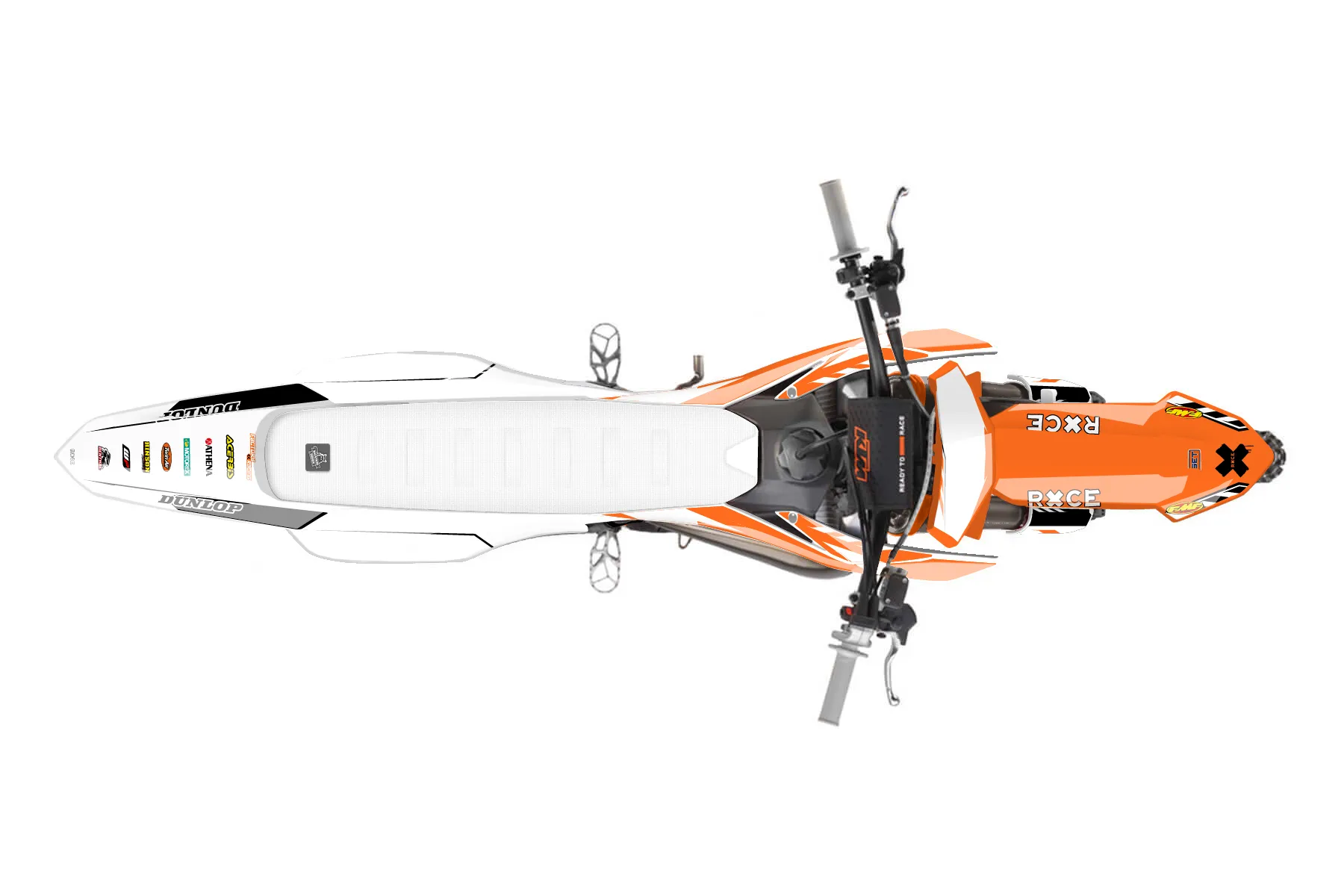 «Alpha» — готовый комплект графики серии Maverick для KTM MX Graphic Kit KTM SX 85 2018. В комплекте: графика на бак и боковые облицовки, крылья (переднее и заднее), передний щиток, номерные таблички, защита вилки. Материал: ПВХ-винил 80 мкр с холодной ламинацией 300 мкр, общая толщина 380 мкр; покрытие глянцевое или матовое на выбор. Устойчив к UV-излучению, воде, бензину и мойке высокого давления. Клей акриловый на сольвентной основе — постоянный, для гибких пластиков. На простых поверхностях монтируется без нагрева; для сложных изгибов рекомендуем фен. Этот пресет можно заказать как есть или взять за основу в конструкторе: поменять цвета, добавить стартовый номер и свой бренд. Производство — 3–5 рабочих дней, доставка по России СДЭКом или Почтой, по СНГ — курьерскими службами.