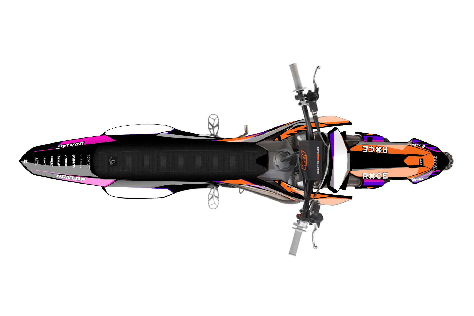 «Limited Pro» — готовый комплект графики серии Maverick для KTM MX Graphic Kit KTM SX 85 2018. В комплекте: графика на бак и боковые облицовки, крылья (переднее и заднее), передний щиток, номерные таблички, защита вилки. Материал: ПВХ-винил 80 мкр с холодной ламинацией 300 мкр, общая толщина 380 мкр; покрытие глянцевое или матовое на выбор. Устойчив к UV-излучению, воде, бензину и мойке высокого давления. Клей акриловый на сольвентной основе — постоянный, для гибких пластиков. На простых поверхностях монтируется без нагрева; для сложных изгибов рекомендуем фен. Этот пресет можно заказать как есть или взять за основу в конструкторе: поменять цвета, добавить стартовый номер и свой бренд. Производство — 3–5 рабочих дней, доставка по России СДЭКом или Почтой, по СНГ — курьерскими службами.