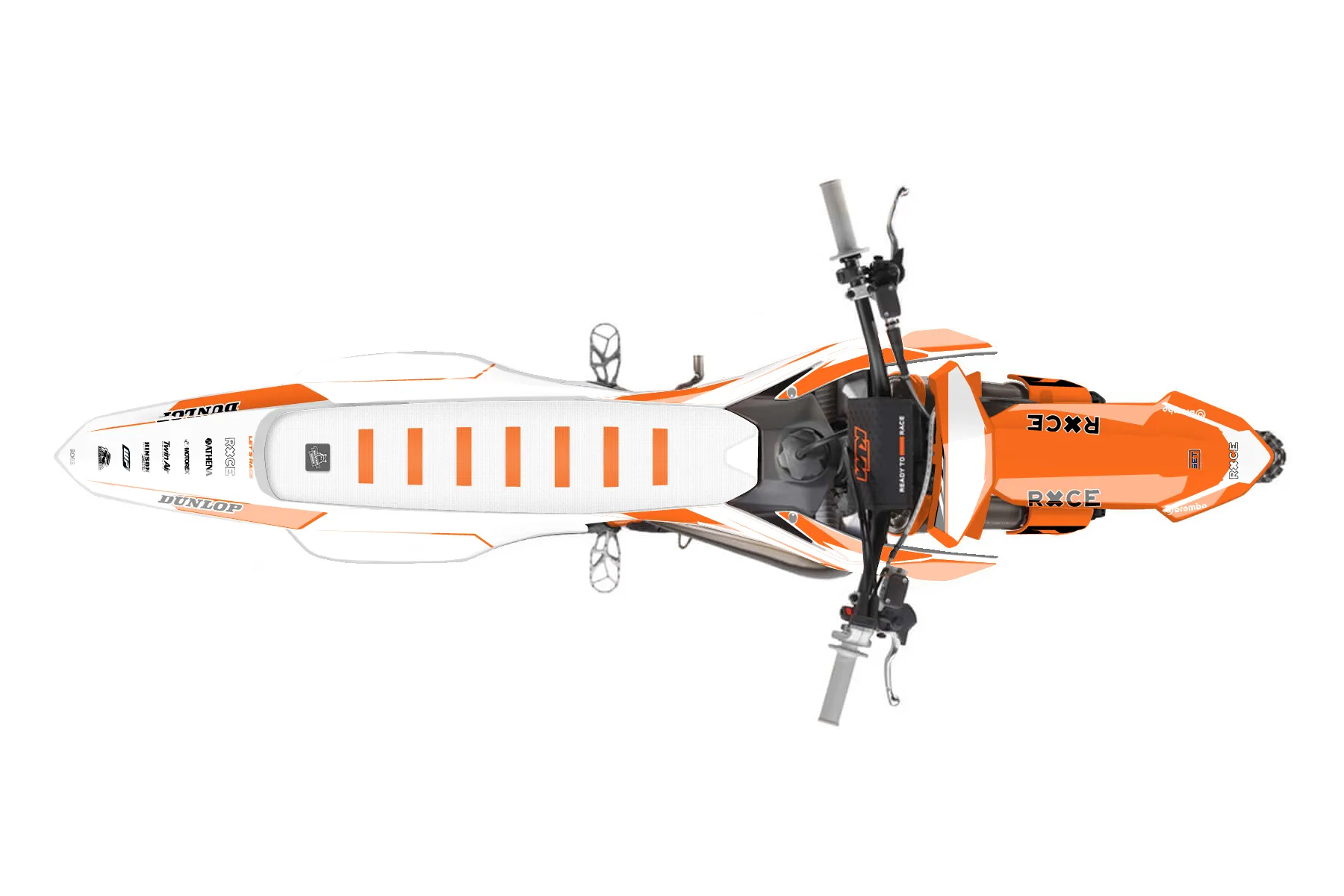 «Metric Pro» — готовый комплект графики серии Maverick для KTM MX Graphic Kit KTM SX 85 2018. В комплекте: графика на бак и боковые облицовки, крылья (переднее и заднее), передний щиток, номерные таблички, защита вилки. Материал: ПВХ-винил 80 мкр с холодной ламинацией 300 мкр, общая толщина 380 мкр; покрытие глянцевое или матовое на выбор. Устойчив к UV-излучению, воде, бензину и мойке высокого давления. Клей акриловый на сольвентной основе — постоянный, для гибких пластиков. На простых поверхностях монтируется без нагрева; для сложных изгибов рекомендуем фен. Этот пресет можно заказать как есть или взять за основу в конструкторе: поменять цвета, добавить стартовый номер и свой бренд. Производство — 3–5 рабочих дней, доставка по России СДЭКом или Почтой, по СНГ — курьерскими службами.