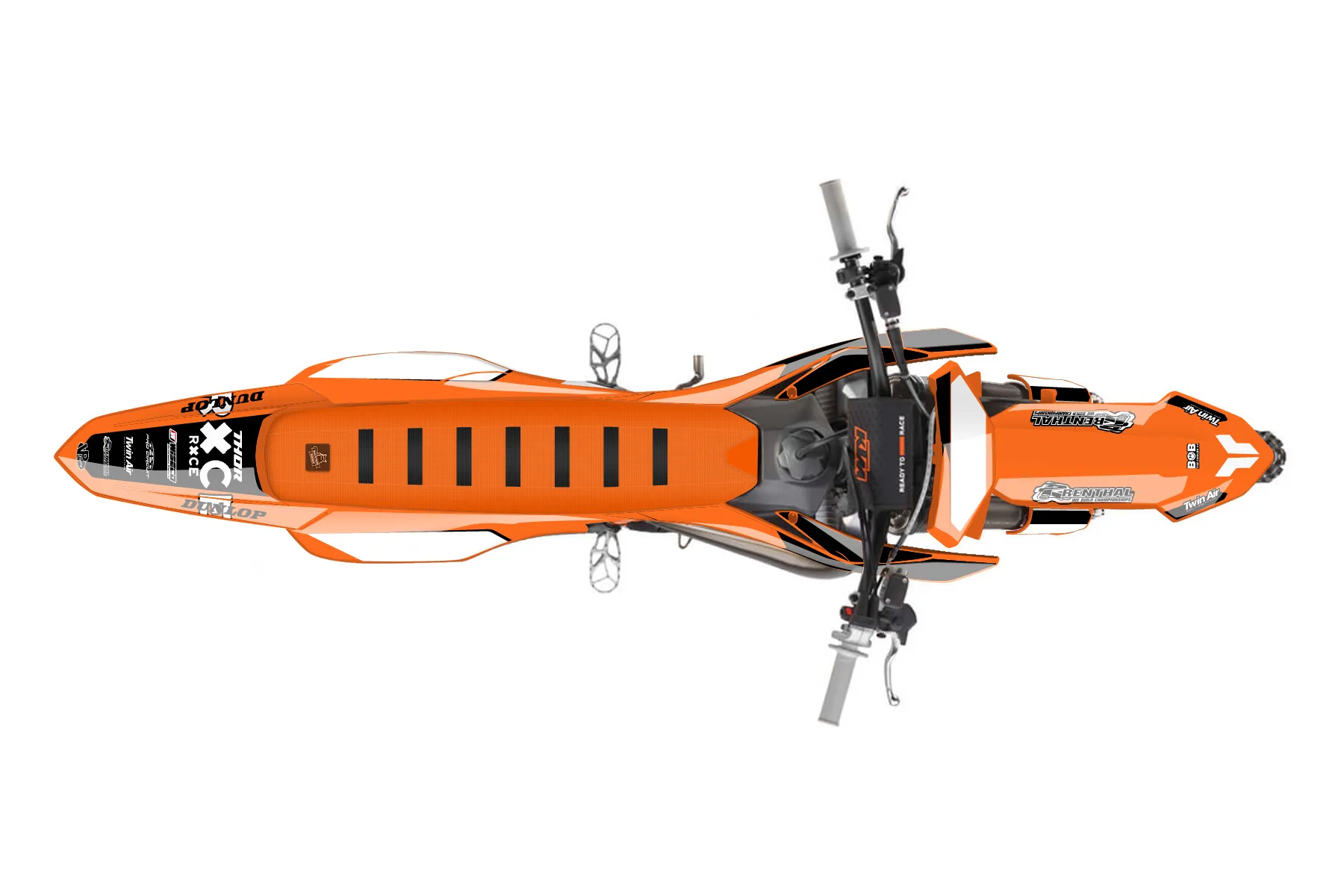 «2025 orange» — готовый комплект графики серии Flow для KTM MX Graphic Kit KTM SX 85 2025. В комплекте: графика на бак и боковые облицовки, крылья (переднее и заднее), передний щиток, номерные таблички, защита вилки. Материал: ПВХ-винил 80 мкр с холодной ламинацией 300 мкр, общая толщина 380 мкр; покрытие глянцевое или матовое на выбор. Устойчив к UV-излучению, воде, бензину и мойке высокого давления. Клей акриловый на сольвентной основе — постоянный, для гибких пластиков. На простых поверхностях монтируется без нагрева; для сложных изгибов рекомендуем фен. Этот пресет можно заказать как есть или взять за основу в конструкторе: поменять цвета, добавить стартовый номер и свой бренд. Производство — 3–5 рабочих дней, доставка по России СДЭКом или Почтой, по СНГ — курьерскими службами.