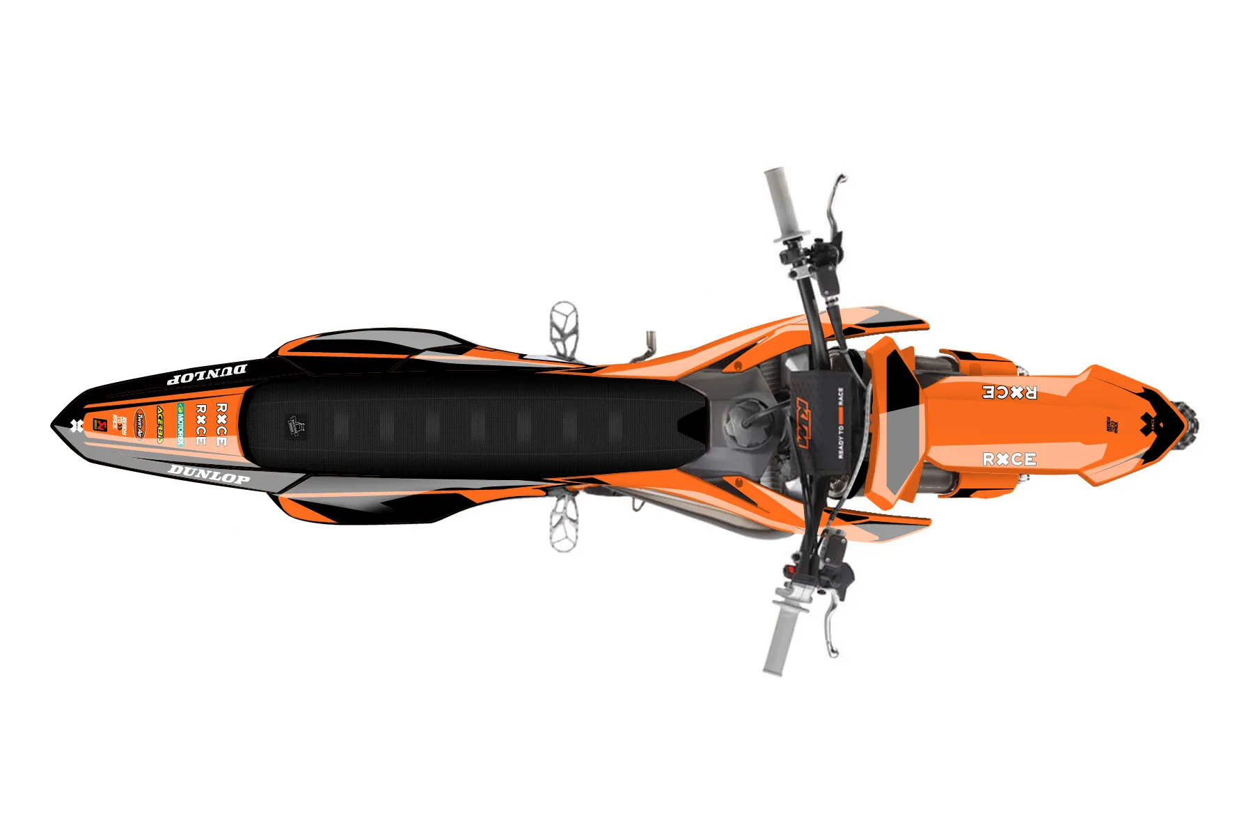 «CustomDesign ktm» — готовый комплект графики серии Flow для KTM MX Graphic Kit KTM SX 85 2025. В комплекте: графика на бак и боковые облицовки, крылья (переднее и заднее), передний щиток, номерные таблички, защита вилки. Материал: ПВХ-винил 80 мкр с холодной ламинацией 300 мкр, общая толщина 380 мкр; покрытие глянцевое или матовое на выбор. Устойчив к UV-излучению, воде, бензину и мойке высокого давления. Клей акриловый на сольвентной основе — постоянный, для гибких пластиков. На простых поверхностях монтируется без нагрева; для сложных изгибов рекомендуем фен. Этот пресет можно заказать как есть или взять за основу в конструкторе: поменять цвета, добавить стартовый номер и свой бренд. Производство — 3–5 рабочих дней, доставка по России СДЭКом или Почтой, по СНГ — курьерскими службами.