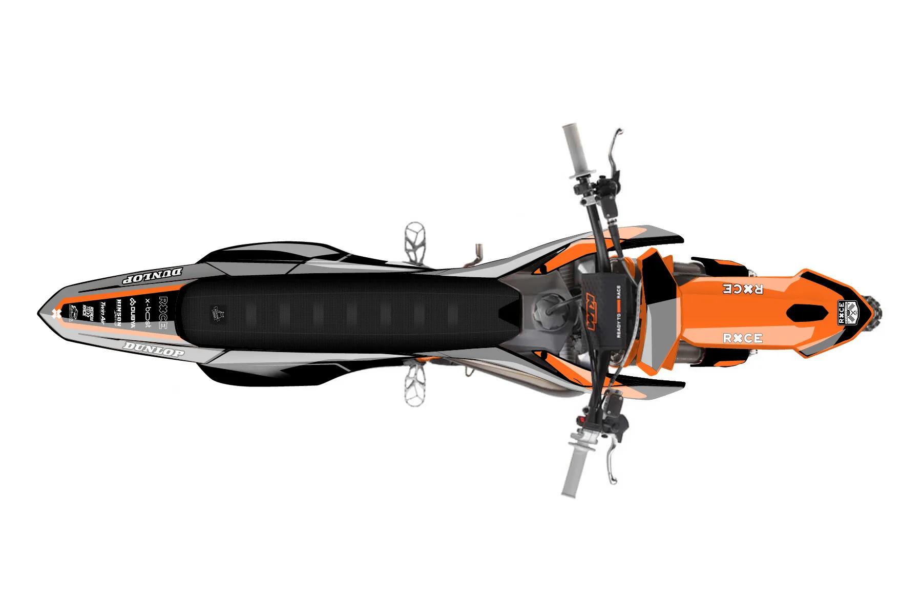 «Invent» — готовый комплект графики серии Flow для KTM MX Graphic Kit KTM SX 85 2025. В комплекте: графика на бак и боковые облицовки, крылья (переднее и заднее), передний щиток, номерные таблички, защита вилки. Материал: ПВХ-винил 80 мкр с холодной ламинацией 300 мкр, общая толщина 380 мкр; покрытие глянцевое или матовое на выбор. Устойчив к UV-излучению, воде, бензину и мойке высокого давления. Клей акриловый на сольвентной основе — постоянный, для гибких пластиков. На простых поверхностях монтируется без нагрева; для сложных изгибов рекомендуем фен. Этот пресет можно заказать как есть или взять за основу в конструкторе: поменять цвета, добавить стартовый номер и свой бренд. Производство — 3–5 рабочих дней, доставка по России СДЭКом или Почтой, по СНГ — курьерскими службами.