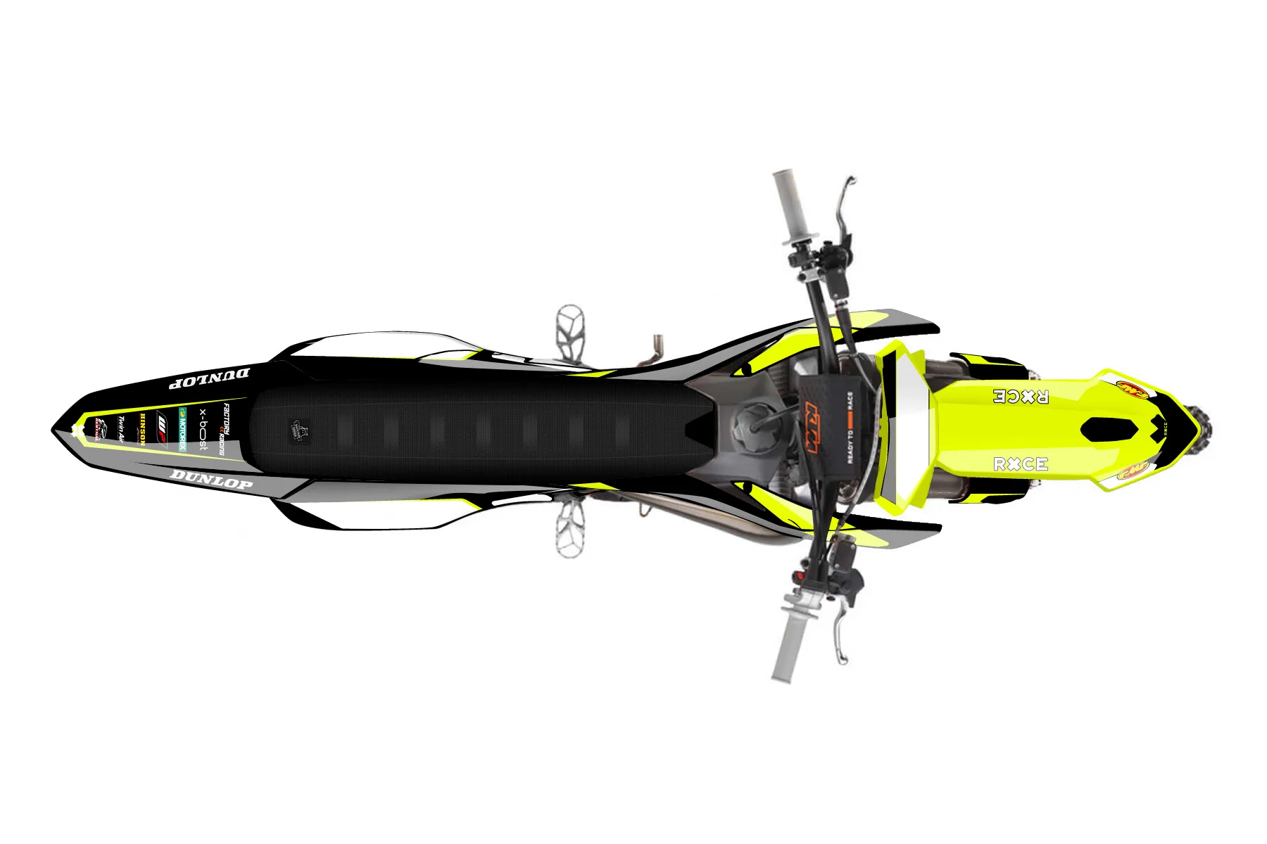 «Lucent Neon» — готовый комплект графики серии Flow для KTM MX Graphic Kit KTM SX 85 2025. В комплекте: графика на бак и боковые облицовки, крылья (переднее и заднее), передний щиток, номерные таблички, защита вилки. Материал: ПВХ-винил 80 мкр с холодной ламинацией 300 мкр, общая толщина 380 мкр; покрытие глянцевое или матовое на выбор. Устойчив к UV-излучению, воде, бензину и мойке высокого давления. Клей акриловый на сольвентной основе — постоянный, для гибких пластиков. На простых поверхностях монтируется без нагрева; для сложных изгибов рекомендуем фен. Этот пресет можно заказать как есть или взять за основу в конструкторе: поменять цвета, добавить стартовый номер и свой бренд. Производство — 3–5 рабочих дней, доставка по России СДЭКом или Почтой, по СНГ — курьерскими службами.