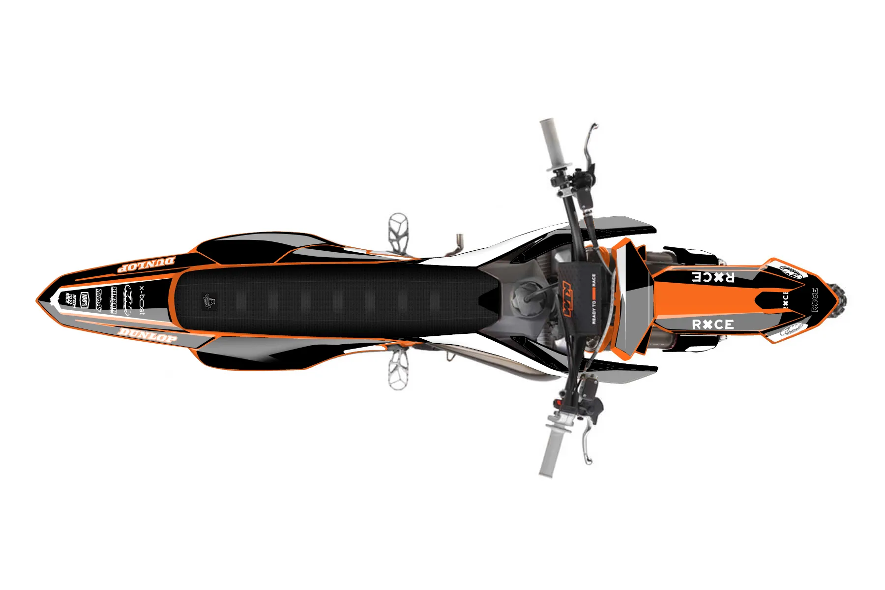 «Race» — готовый комплект графики серии Flow для KTM MX Graphic Kit KTM SX 85 2025. В комплекте: графика на бак и боковые облицовки, крылья (переднее и заднее), передний щиток, номерные таблички, защита вилки. Материал: ПВХ-винил 80 мкр с холодной ламинацией 300 мкр, общая толщина 380 мкр; покрытие глянцевое или матовое на выбор. Устойчив к UV-излучению, воде, бензину и мойке высокого давления. Клей акриловый на сольвентной основе — постоянный, для гибких пластиков. На простых поверхностях монтируется без нагрева; для сложных изгибов рекомендуем фен. Этот пресет можно заказать как есть или взять за основу в конструкторе: поменять цвета, добавить стартовый номер и свой бренд. Производство — 3–5 рабочих дней, доставка по России СДЭКом или Почтой, по СНГ — курьерскими службами.