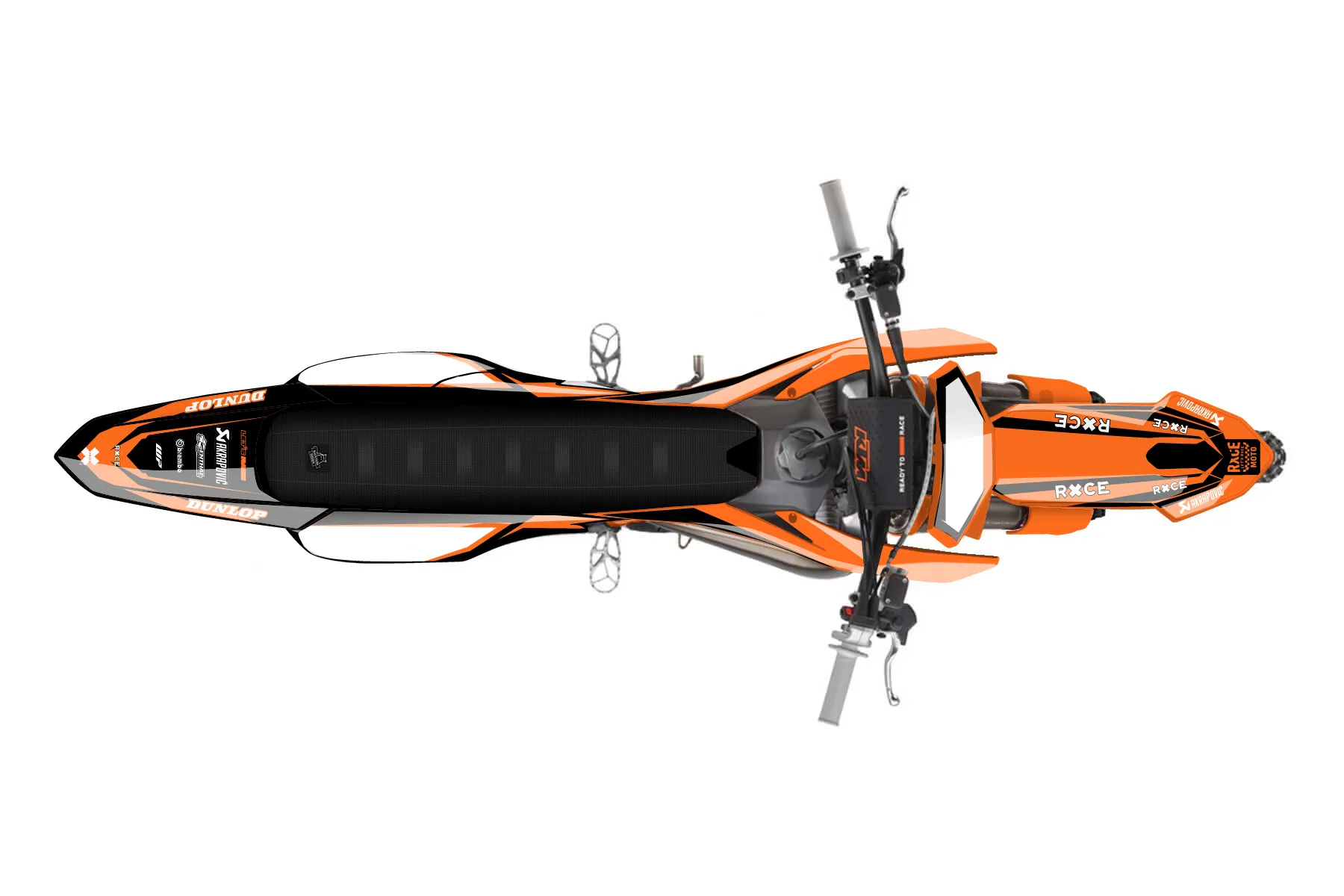 «Clinch» — готовый комплект графики серии Fusion для KTM MX Graphic Kit KTM SX 85 2025. В комплекте: графика на бак и боковые облицовки, крылья (переднее и заднее), передний щиток, номерные таблички, защита вилки. Материал: ПВХ-винил 80 мкр с холодной ламинацией 300 мкр, общая толщина 380 мкр; покрытие глянцевое или матовое на выбор. Устойчив к UV-излучению, воде, бензину и мойке высокого давления. Клей акриловый на сольвентной основе — постоянный, для гибких пластиков. На простых поверхностях монтируется без нагрева; для сложных изгибов рекомендуем фен. Этот пресет можно заказать как есть или взять за основу в конструкторе: поменять цвета, добавить стартовый номер и свой бренд. Производство — 3–5 рабочих дней, доставка по России СДЭКом или Почтой, по СНГ — курьерскими службами.