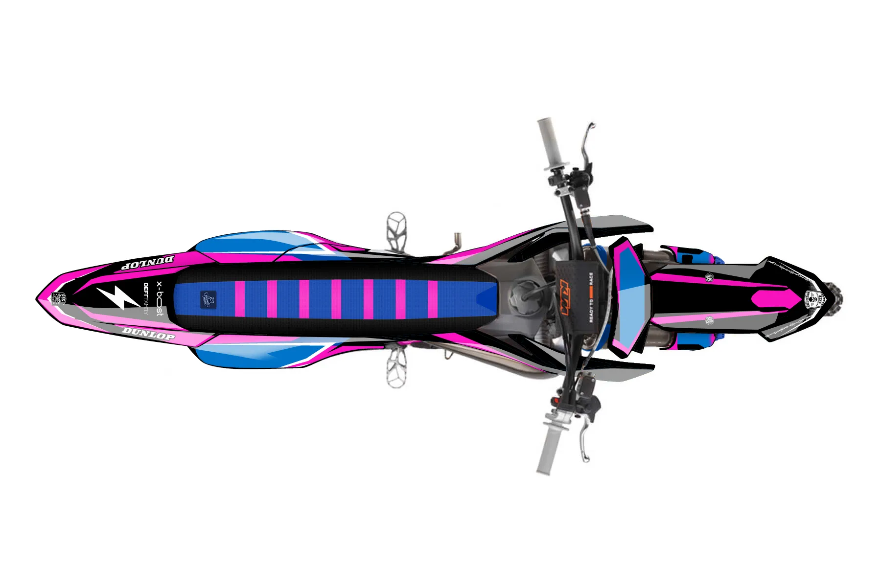 «pink,black,blue.» — готовый комплект графики серии Fusion для KTM MX Graphic Kit KTM SX 85 2025. В комплекте: графика на бак и боковые облицовки, крылья (переднее и заднее), передний щиток, номерные таблички, защита вилки. Материал: ПВХ-винил 80 мкр с холодной ламинацией 300 мкр, общая толщина 380 мкр; покрытие глянцевое или матовое на выбор. Устойчив к UV-излучению, воде, бензину и мойке высокого давления. Клей акриловый на сольвентной основе — постоянный, для гибких пластиков. На простых поверхностях монтируется без нагрева; для сложных изгибов рекомендуем фен. Этот пресет можно заказать как есть или взять за основу в конструкторе: поменять цвета, добавить стартовый номер и свой бренд. Производство — 3–5 рабочих дней, доставка по России СДЭКом или Почтой, по СНГ — курьерскими службами.