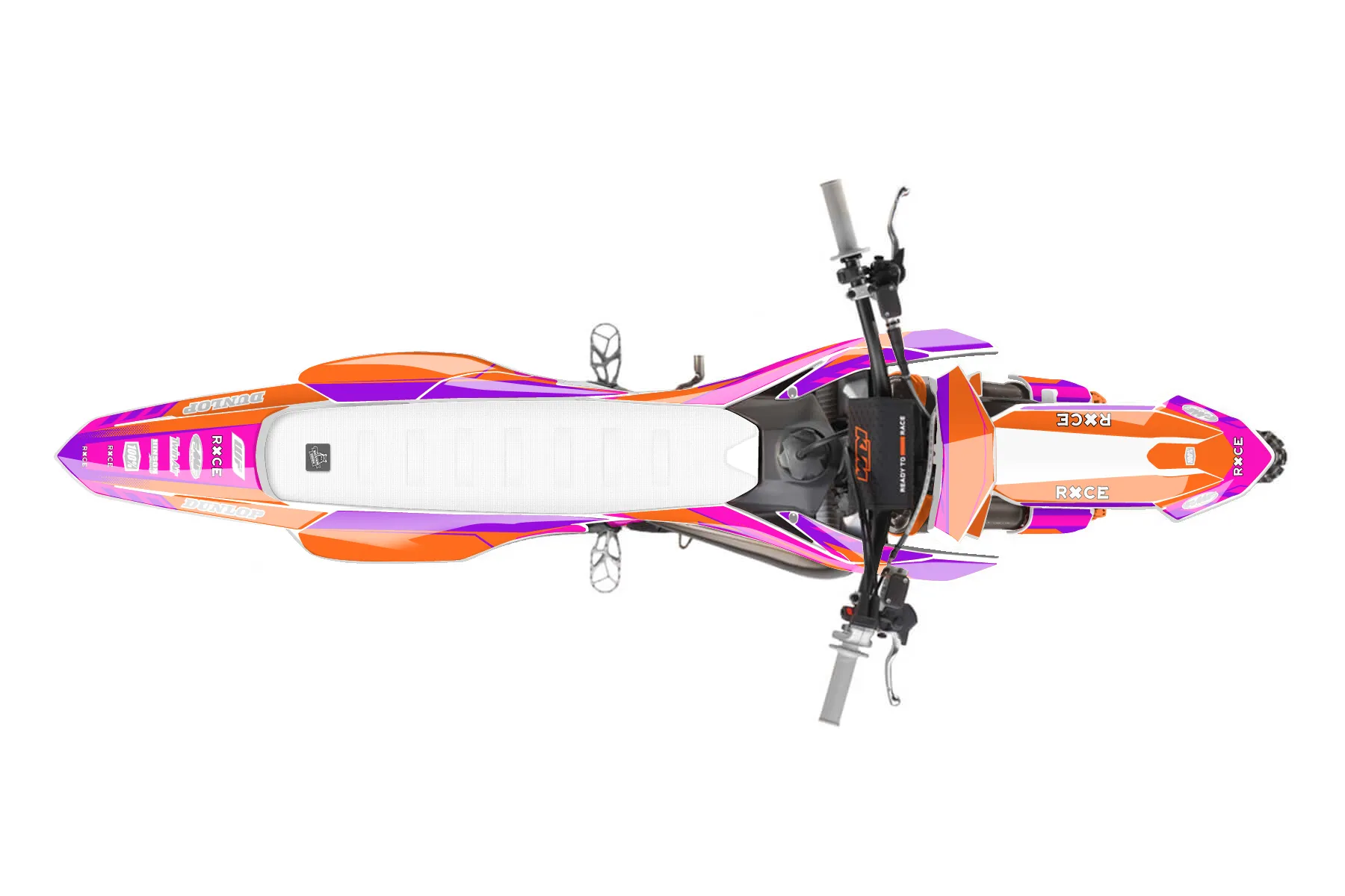 «CustomDesign» — готовый комплект графики серии Maverick для KTM MX Graphic Kit KTM SX 85 2025. В комплекте: графика на бак и боковые облицовки, крылья (переднее и заднее), передний щиток, номерные таблички, защита вилки. Материал: ПВХ-винил 80 мкр с холодной ламинацией 300 мкр, общая толщина 380 мкр; покрытие глянцевое или матовое на выбор. Устойчив к UV-излучению, воде, бензину и мойке высокого давления. Клей акриловый на сольвентной основе — постоянный, для гибких пластиков. На простых поверхностях монтируется без нагрева; для сложных изгибов рекомендуем фен. Этот пресет можно заказать как есть или взять за основу в конструкторе: поменять цвета, добавить стартовый номер и свой бренд. Производство — 3–5 рабочих дней, доставка по России СДЭКом или Почтой, по СНГ — курьерскими службами.