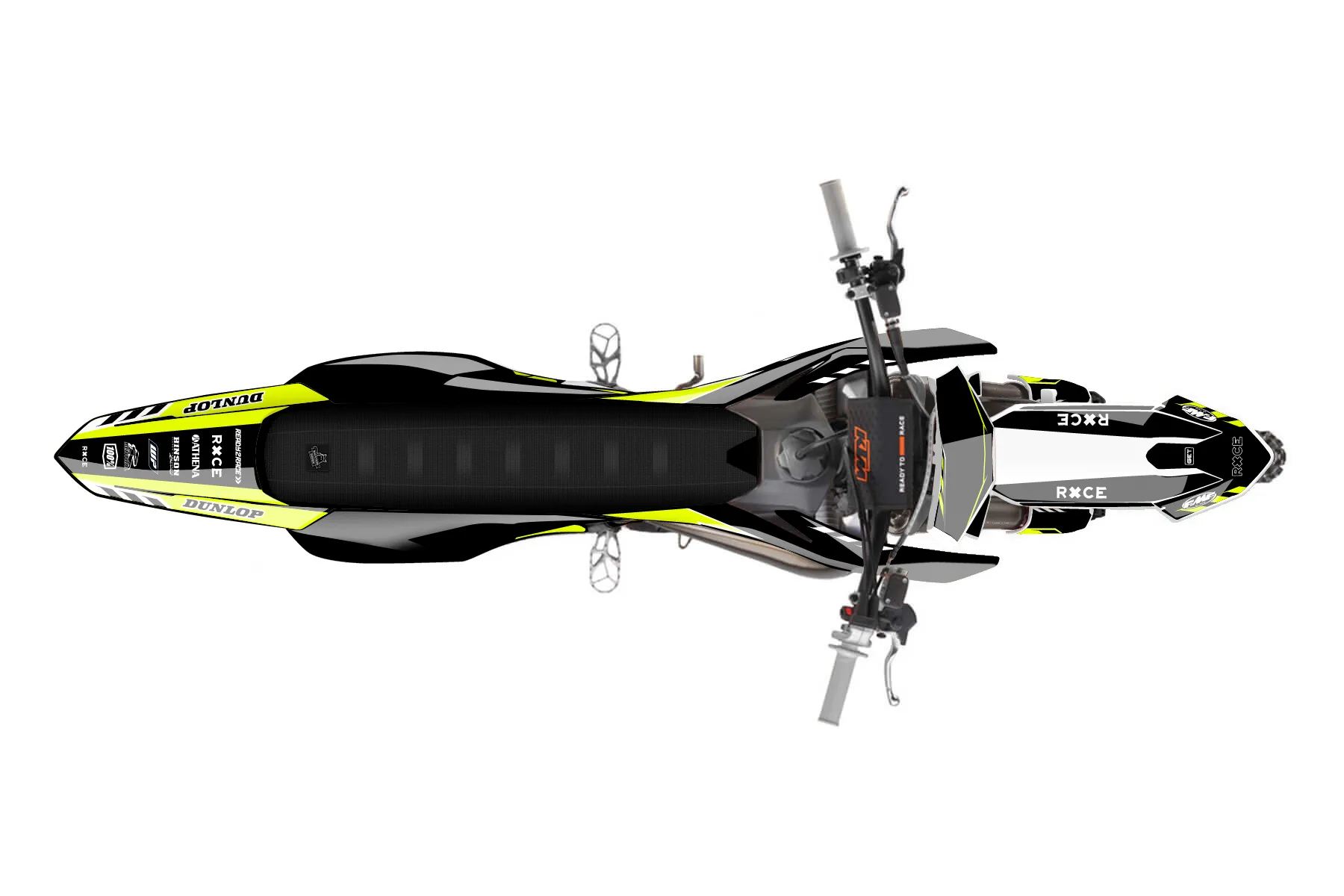 «Daze Fluo» — готовый комплект графики серии Maverick для KTM MX Graphic Kit KTM SX 85 2025. В комплекте: графика на бак и боковые облицовки, крылья (переднее и заднее), передний щиток, номерные таблички, защита вилки. Материал: ПВХ-винил 80 мкр с холодной ламинацией 300 мкр, общая толщина 380 мкр; покрытие глянцевое или матовое на выбор. Устойчив к UV-излучению, воде, бензину и мойке высокого давления. Клей акриловый на сольвентной основе — постоянный, для гибких пластиков. На простых поверхностях монтируется без нагрева; для сложных изгибов рекомендуем фен. Этот пресет можно заказать как есть или взять за основу в конструкторе: поменять цвета, добавить стартовый номер и свой бренд. Производство — 3–5 рабочих дней, доставка по России СДЭКом или Почтой, по СНГ — курьерскими службами.