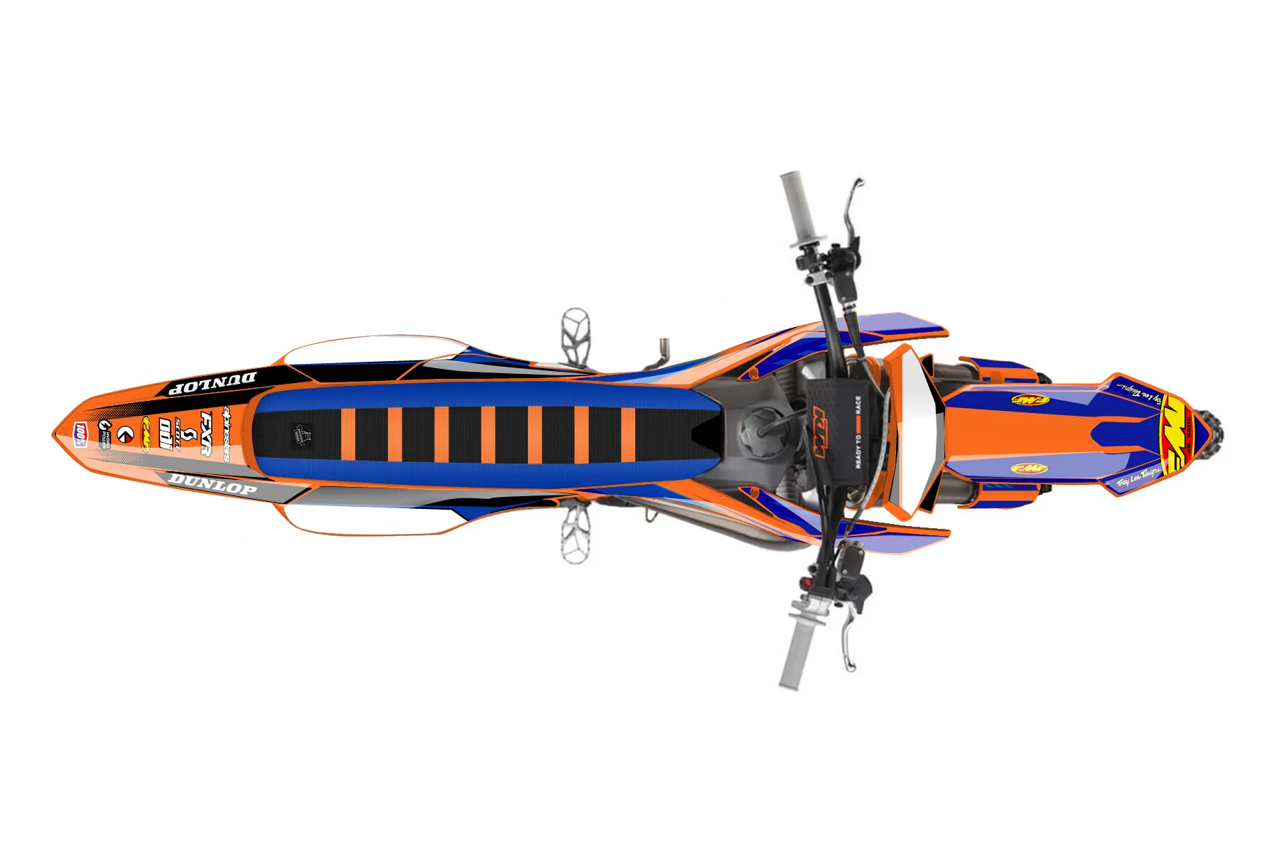 «Tylers fmf ktm 85 sx» — готовый комплект графики серии Maverick для KTM MX Graphic Kit KTM SX 85 2025. В комплекте: графика на бак и боковые облицовки, крылья (переднее и заднее), передний щиток, номерные таблички, защита вилки. Материал: ПВХ-винил 80 мкр с холодной ламинацией 300 мкр, общая толщина 380 мкр; покрытие глянцевое или матовое на выбор. Устойчив к UV-излучению, воде, бензину и мойке высокого давления. Клей акриловый на сольвентной основе — постоянный, для гибких пластиков. На простых поверхностях монтируется без нагрева; для сложных изгибов рекомендуем фен. Этот пресет можно заказать как есть или взять за основу в конструкторе: поменять цвета, добавить стартовый номер и свой бренд. Производство — 3–5 рабочих дней, доставка по России СДЭКом или Почтой, по СНГ — курьерскими службами.