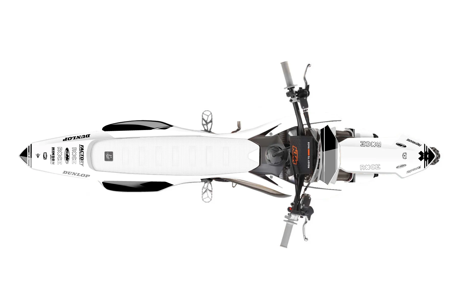 «DesignHouse» — готовый комплект графики серии Untucked для KTM MX Graphic Kit KTM SX 85 2025. В комплекте: графика на бак и боковые облицовки, крылья (переднее и заднее), передний щиток, номерные таблички, защита вилки. Материал: ПВХ-винил 80 мкр с холодной ламинацией 300 мкр, общая толщина 380 мкр; покрытие глянцевое или матовое на выбор. Устойчив к UV-излучению, воде, бензину и мойке высокого давления. Клей акриловый на сольвентной основе — постоянный, для гибких пластиков. На простых поверхностях монтируется без нагрева; для сложных изгибов рекомендуем фен. Этот пресет можно заказать как есть или взять за основу в конструкторе: поменять цвета, добавить стартовый номер и свой бренд. Производство — 3–5 рабочих дней, доставка по России СДЭКом или Почтой, по СНГ — курьерскими службами.