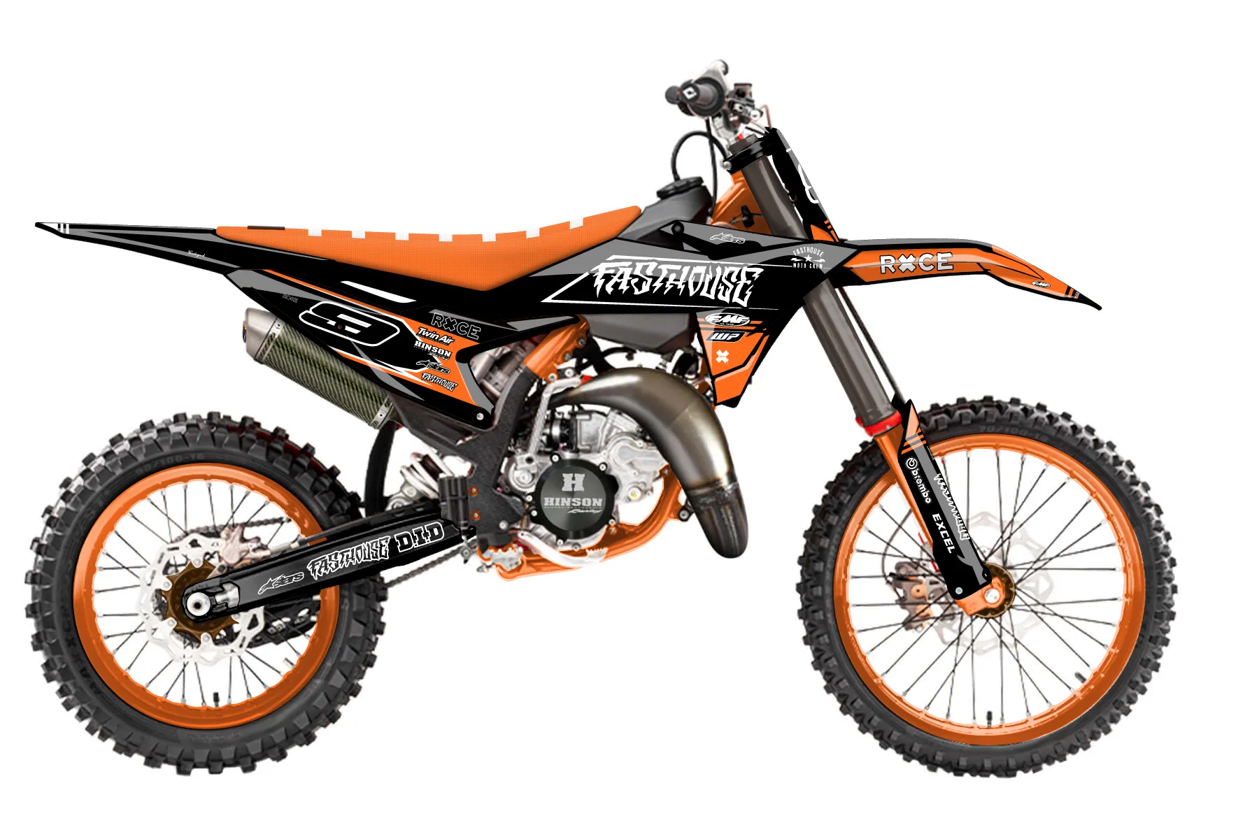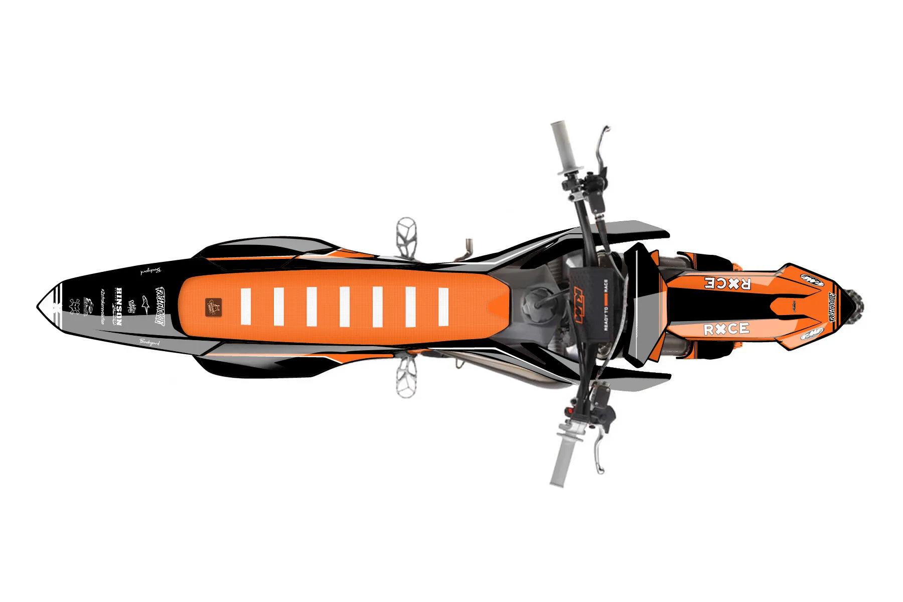 «fasthouse» — готовый комплект графики серии Untucked для KTM MX Graphic Kit KTM SX 85 2025. В комплекте: графика на бак и боковые облицовки, крылья (переднее и заднее), передний щиток, номерные таблички, защита вилки. Материал: ПВХ-винил 80 мкр с холодной ламинацией 300 мкр, общая толщина 380 мкр; покрытие глянцевое или матовое на выбор. Устойчив к UV-излучению, воде, бензину и мойке высокого давления. Клей акриловый на сольвентной основе — постоянный, для гибких пластиков. На простых поверхностях монтируется без нагрева; для сложных изгибов рекомендуем фен. Этот пресет можно заказать как есть или взять за основу в конструкторе: поменять цвета, добавить стартовый номер и свой бренд. Производство — 3–5 рабочих дней, доставка по России СДЭКом или Почтой, по СНГ — курьерскими службами.