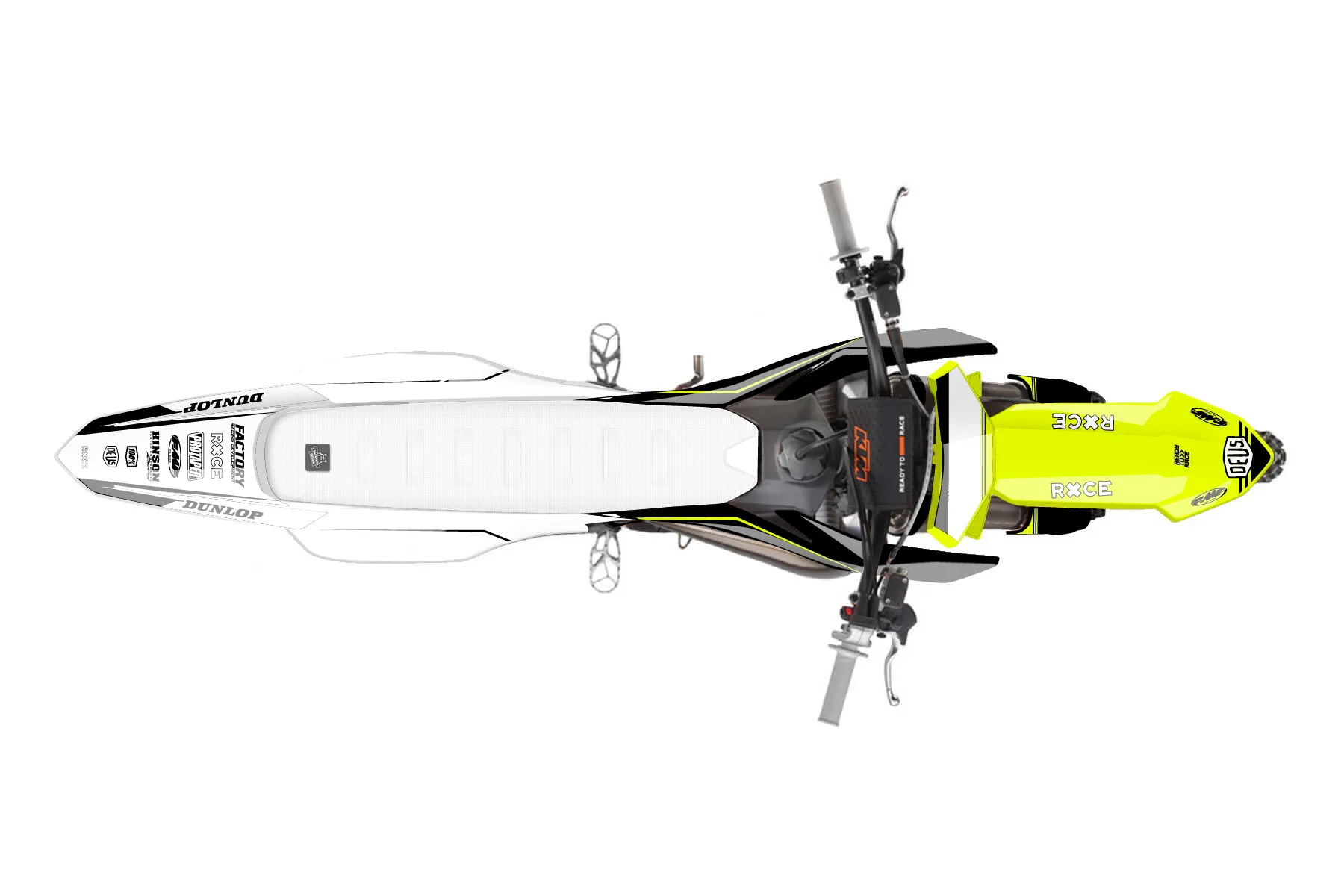 «Ride Neon» — готовый комплект графики серии Untucked для KTM MX Graphic Kit KTM SX 85 2025. В комплекте: графика на бак и боковые облицовки, крылья (переднее и заднее), передний щиток, номерные таблички, защита вилки. Материал: ПВХ-винил 80 мкр с холодной ламинацией 300 мкр, общая толщина 380 мкр; покрытие глянцевое или матовое на выбор. Устойчив к UV-излучению, воде, бензину и мойке высокого давления. Клей акриловый на сольвентной основе — постоянный, для гибких пластиков. На простых поверхностях монтируется без нагрева; для сложных изгибов рекомендуем фен. Этот пресет можно заказать как есть или взять за основу в конструкторе: поменять цвета, добавить стартовый номер и свой бренд. Производство — 3–5 рабочих дней, доставка по России СДЭКом или Почтой, по СНГ — курьерскими службами.