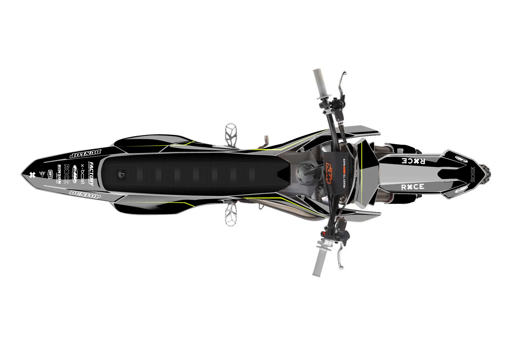 «Warp Neon» — готовый комплект графики серии Untucked для KTM MX Graphic Kit KTM SX 85 2025. В комплекте: графика на бак и боковые облицовки, крылья (переднее и заднее), передний щиток, номерные таблички, защита вилки. Материал: ПВХ-винил 80 мкр с холодной ламинацией 300 мкр, общая толщина 380 мкр; покрытие глянцевое или матовое на выбор. Устойчив к UV-излучению, воде, бензину и мойке высокого давления. Клей акриловый на сольвентной основе — постоянный, для гибких пластиков. На простых поверхностях монтируется без нагрева; для сложных изгибов рекомендуем фен. Этот пресет можно заказать как есть или взять за основу в конструкторе: поменять цвета, добавить стартовый номер и свой бренд. Производство — 3–5 рабочих дней, доставка по России СДЭКом или Почтой, по СНГ — курьерскими службами.
