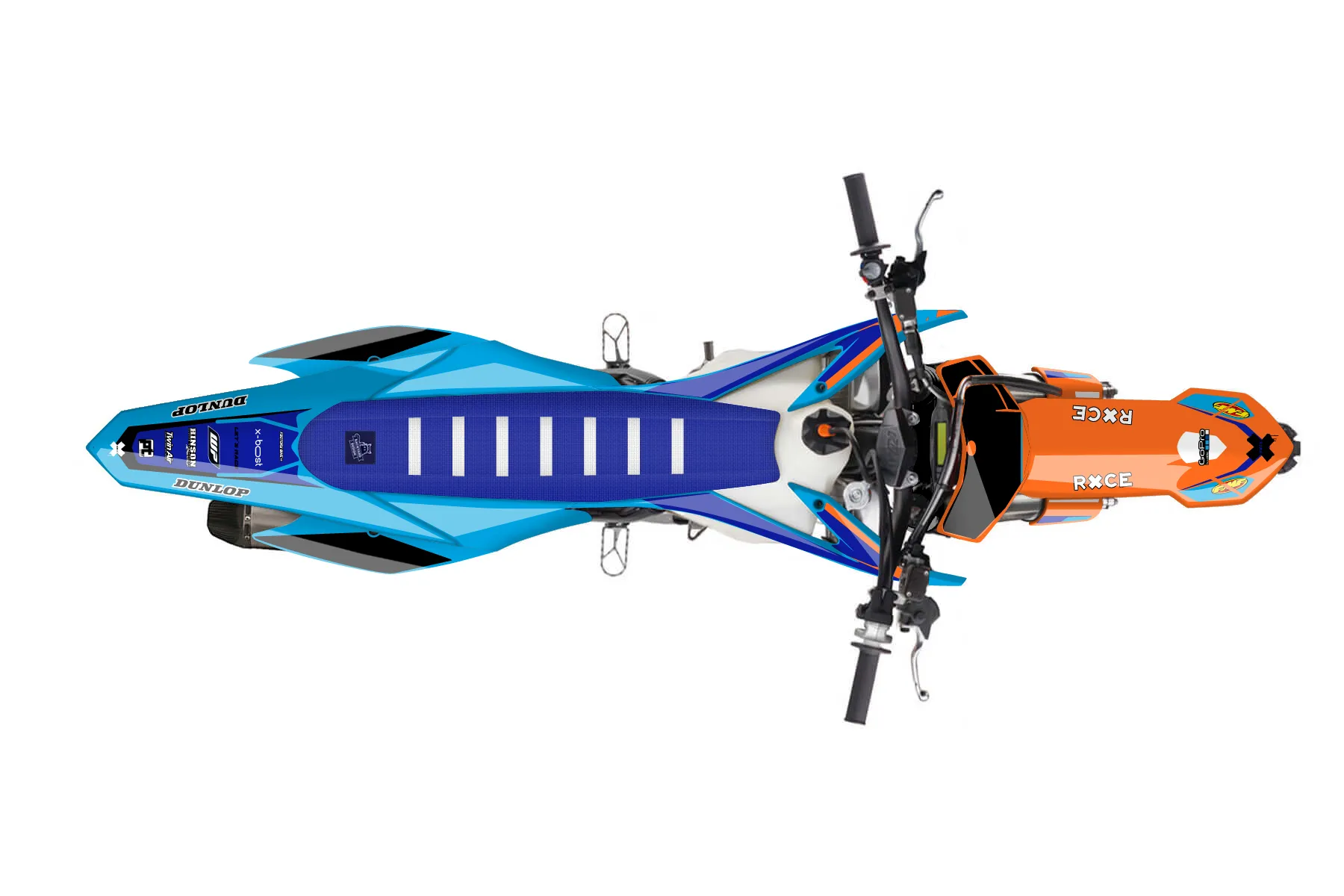 «Signature» — готовый комплект графики серии Flow для KTM MX Graphic Kit KTM SX-F 250 2013. В комплекте: графика на бак и боковые облицовки, крылья (переднее и заднее), передний щиток, номерные таблички, защита вилки. Материал: ПВХ-винил 80 мкр с холодной ламинацией 300 мкр, общая толщина 380 мкр; покрытие глянцевое или матовое на выбор. Устойчив к UV-излучению, воде, бензину и мойке высокого давления. Клей акриловый на сольвентной основе — постоянный, для гибких пластиков. На простых поверхностях монтируется без нагрева; для сложных изгибов рекомендуем фен. Этот пресет можно заказать как есть или взять за основу в конструкторе: поменять цвета, добавить стартовый номер и свой бренд. Производство — 3–5 рабочих дней, доставка по России СДЭКом или Почтой, по СНГ — курьерскими службами.