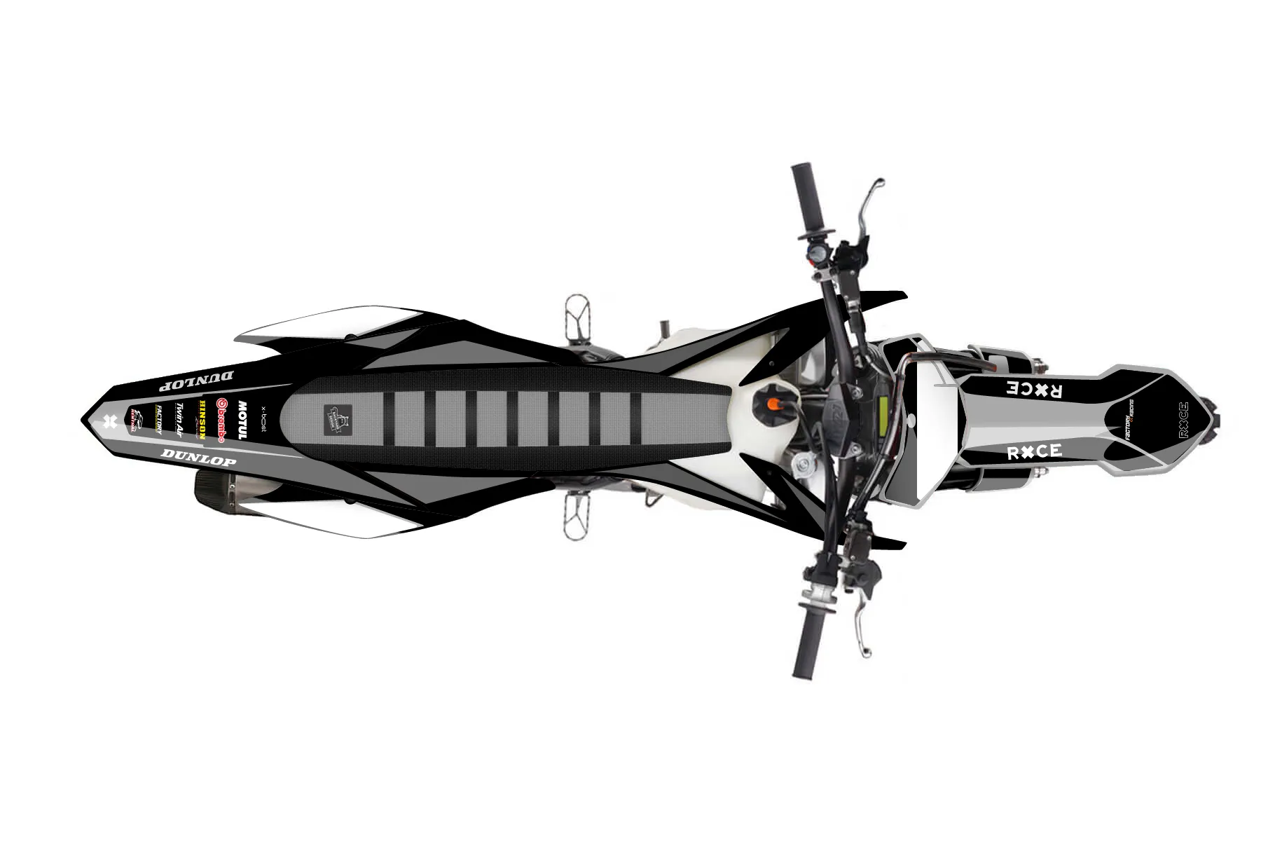 «Transworld» — готовый комплект графики серии Flow для KTM MX Graphic Kit KTM SX-F 250 2013. В комплекте: графика на бак и боковые облицовки, крылья (переднее и заднее), передний щиток, номерные таблички, защита вилки. Материал: ПВХ-винил 80 мкр с холодной ламинацией 300 мкр, общая толщина 380 мкр; покрытие глянцевое или матовое на выбор. Устойчив к UV-излучению, воде, бензину и мойке высокого давления. Клей акриловый на сольвентной основе — постоянный, для гибких пластиков. На простых поверхностях монтируется без нагрева; для сложных изгибов рекомендуем фен. Этот пресет можно заказать как есть или взять за основу в конструкторе: поменять цвета, добавить стартовый номер и свой бренд. Производство — 3–5 рабочих дней, доставка по России СДЭКом или Почтой, по СНГ — курьерскими службами.