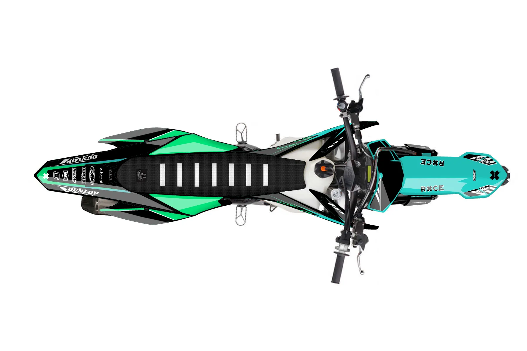 «Refuse» — готовый комплект графики серии Maverick для KTM MX Graphic Kit KTM SX-F 250 2013. В комплекте: графика на бак и боковые облицовки, крылья (переднее и заднее), передний щиток, номерные таблички, защита вилки. Материал: ПВХ-винил 80 мкр с холодной ламинацией 300 мкр, общая толщина 380 мкр; покрытие глянцевое или матовое на выбор. Устойчив к UV-излучению, воде, бензину и мойке высокого давления. Клей акриловый на сольвентной основе — постоянный, для гибких пластиков. На простых поверхностях монтируется без нагрева; для сложных изгибов рекомендуем фен. Этот пресет можно заказать как есть или взять за основу в конструкторе: поменять цвета, добавить стартовый номер и свой бренд. Производство — 3–5 рабочих дней, доставка по России СДЭКом или Почтой, по СНГ — курьерскими службами.