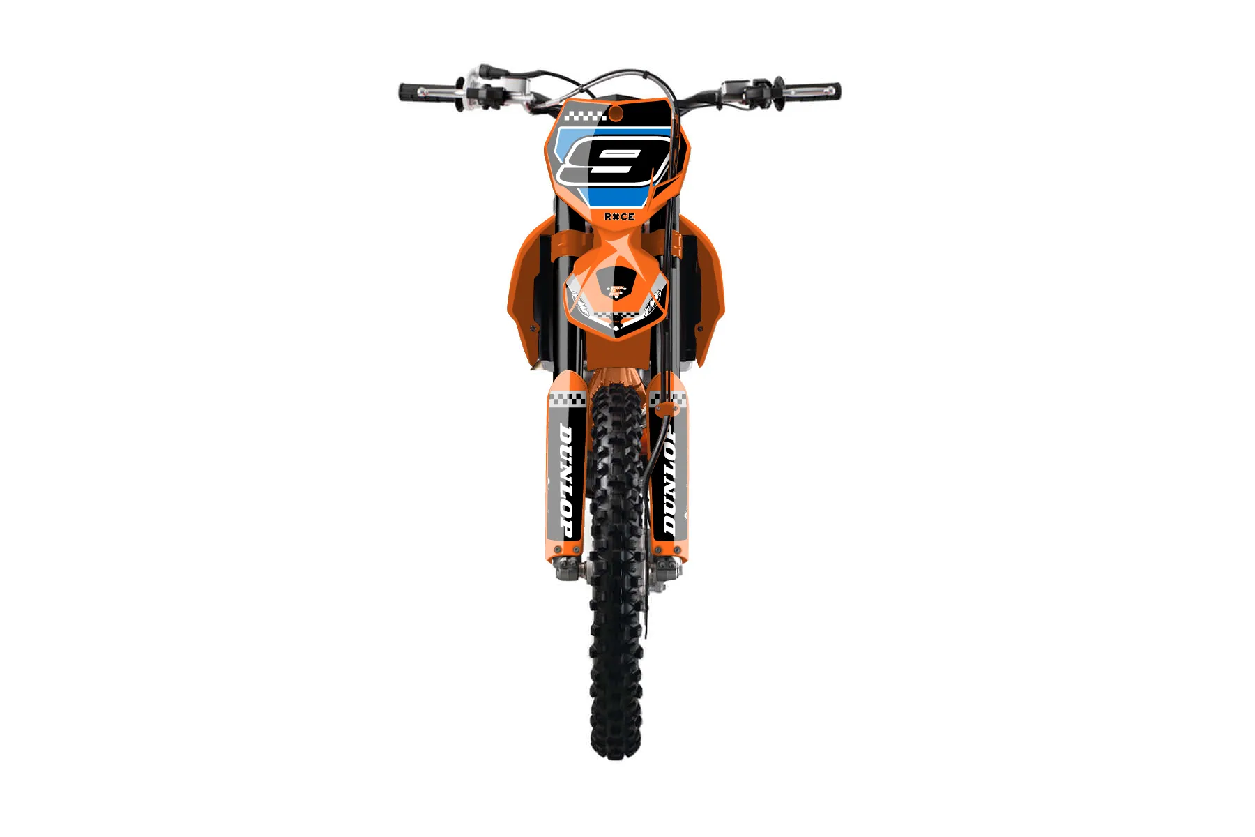 «Clean» — готовый комплект графики серии Staple для KTM MX Graphic Kit KTM SX-F 250 2013. В комплекте: графика на бак и боковые облицовки, крылья (переднее и заднее), передний щиток, номерные таблички, защита вилки. Материал: ПВХ-винил 80 мкр с холодной ламинацией 300 мкр, общая толщина 380 мкр; покрытие глянцевое или матовое на выбор. Устойчив к UV-излучению, воде, бензину и мойке высокого давления. Клей акриловый на сольвентной основе — постоянный, для гибких пластиков. На простых поверхностях монтируется без нагрева; для сложных изгибов рекомендуем фен. Этот пресет можно заказать как есть или взять за основу в конструкторе: поменять цвета, добавить стартовый номер и свой бренд. Производство — 3–5 рабочих дней, доставка по России СДЭКом или Почтой, по СНГ — курьерскими службами.