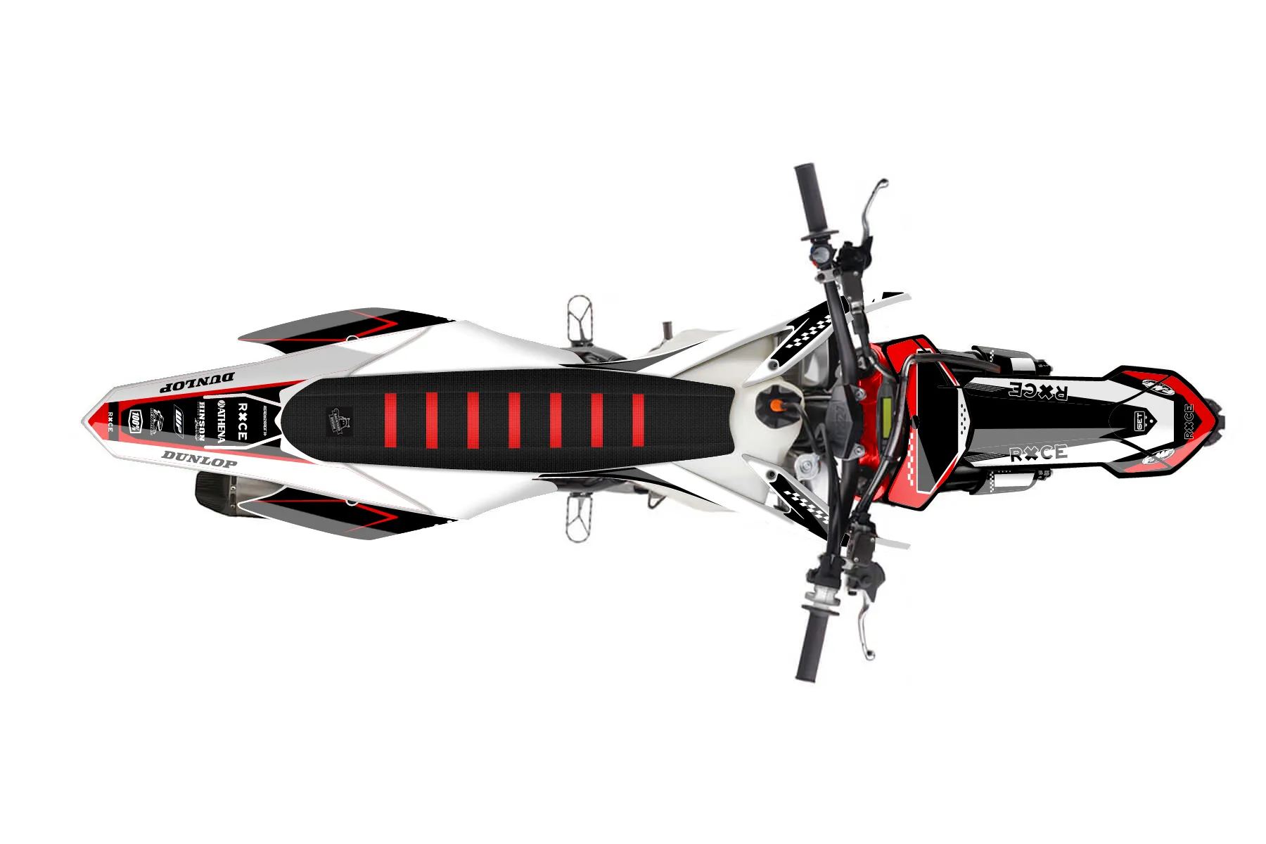 «datnewnew» — готовый комплект графики серии Staple для KTM MX Graphic Kit KTM SX-F 250 2013. В комплекте: графика на бак и боковые облицовки, крылья (переднее и заднее), передний щиток, номерные таблички, защита вилки. Материал: ПВХ-винил 80 мкр с холодной ламинацией 300 мкр, общая толщина 380 мкр; покрытие глянцевое или матовое на выбор. Устойчив к UV-излучению, воде, бензину и мойке высокого давления. Клей акриловый на сольвентной основе — постоянный, для гибких пластиков. На простых поверхностях монтируется без нагрева; для сложных изгибов рекомендуем фен. Этот пресет можно заказать как есть или взять за основу в конструкторе: поменять цвета, добавить стартовый номер и свой бренд. Производство — 3–5 рабочих дней, доставка по России СДЭКом или Почтой, по СНГ — курьерскими службами.