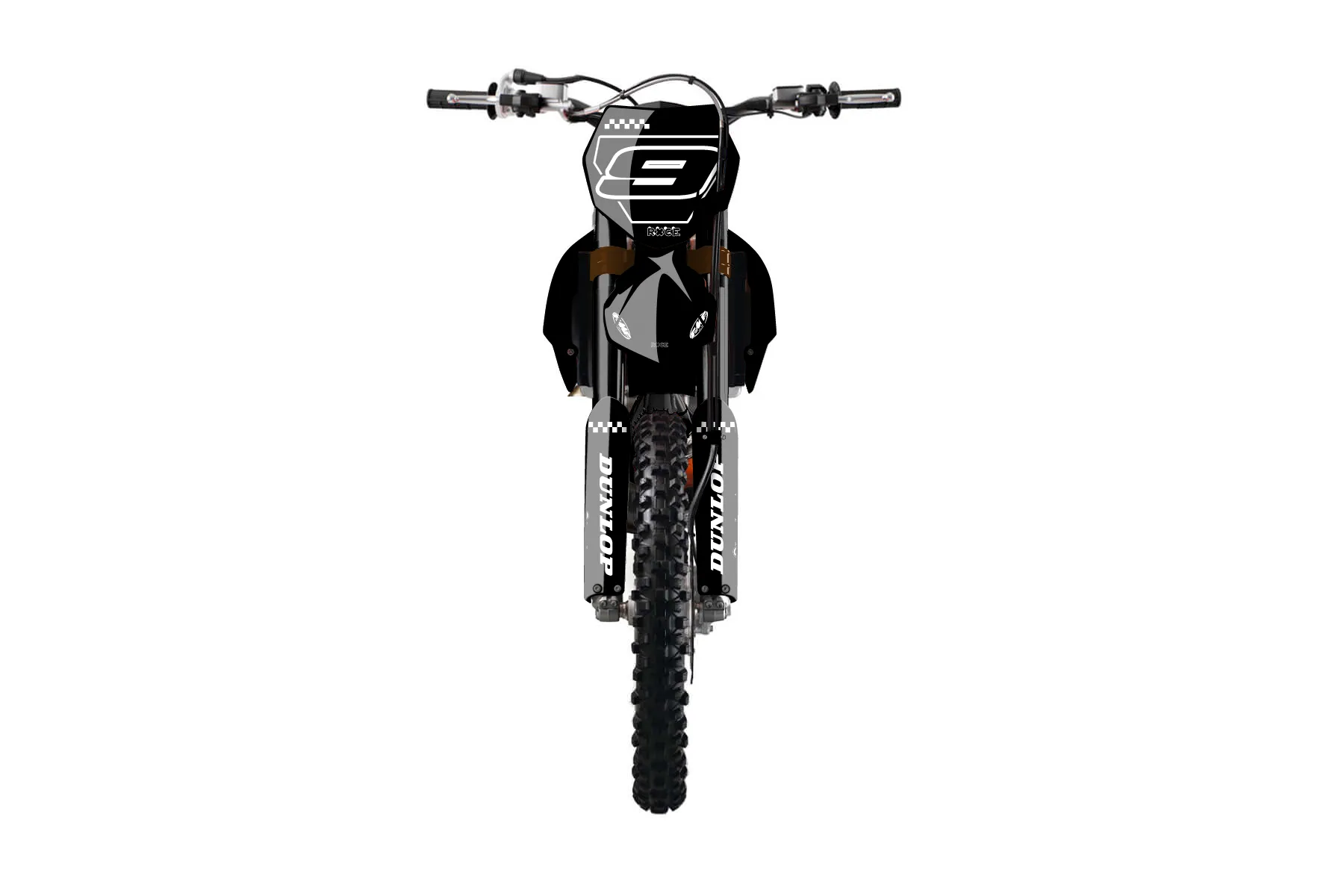«Prvi model» — готовый комплект графики серии Staple для KTM MX Graphic Kit KTM SX-F 250 2013. В комплекте: графика на бак и боковые облицовки, крылья (переднее и заднее), передний щиток, номерные таблички, защита вилки. Материал: ПВХ-винил 80 мкр с холодной ламинацией 300 мкр, общая толщина 380 мкр; покрытие глянцевое или матовое на выбор. Устойчив к UV-излучению, воде, бензину и мойке высокого давления. Клей акриловый на сольвентной основе — постоянный, для гибких пластиков. На простых поверхностях монтируется без нагрева; для сложных изгибов рекомендуем фен. Этот пресет можно заказать как есть или взять за основу в конструкторе: поменять цвета, добавить стартовый номер и свой бренд. Производство — 3–5 рабочих дней, доставка по России СДЭКом или Почтой, по СНГ — курьерскими службами.