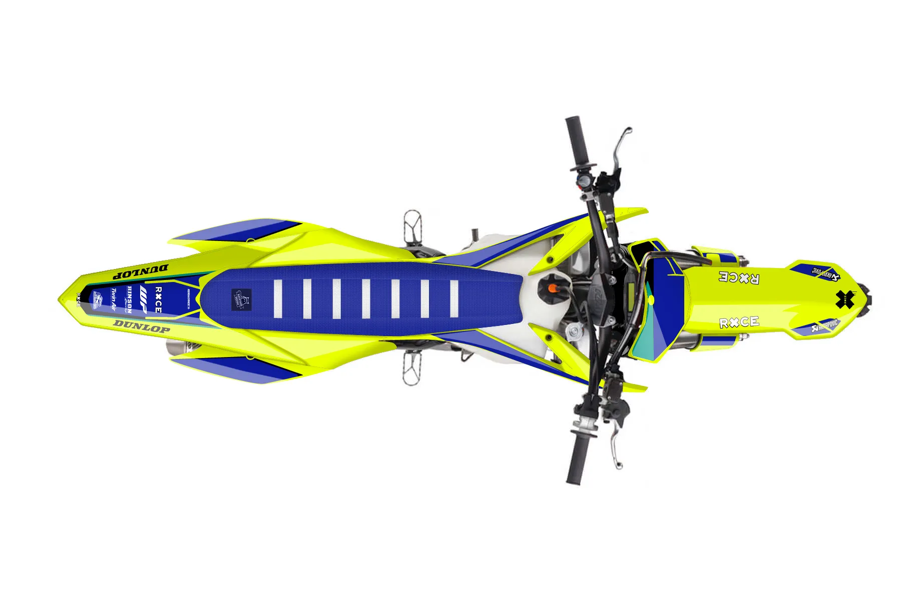 «Brilliant Neon» — готовый комплект графики серии Flow для KTM MX Graphic Kit KTM SX-F 250 2015. В комплекте: графика на бак и боковые облицовки, крылья (переднее и заднее), передний щиток, номерные таблички, защита вилки. Материал: ПВХ-винил 80 мкр с холодной ламинацией 300 мкр, общая толщина 380 мкр; покрытие глянцевое или матовое на выбор. Устойчив к UV-излучению, воде, бензину и мойке высокого давления. Клей акриловый на сольвентной основе — постоянный, для гибких пластиков. На простых поверхностях монтируется без нагрева; для сложных изгибов рекомендуем фен. Этот пресет можно заказать как есть или взять за основу в конструкторе: поменять цвета, добавить стартовый номер и свой бренд. Производство — 3–5 рабочих дней, доставка по России СДЭКом или Почтой, по СНГ — курьерскими службами.