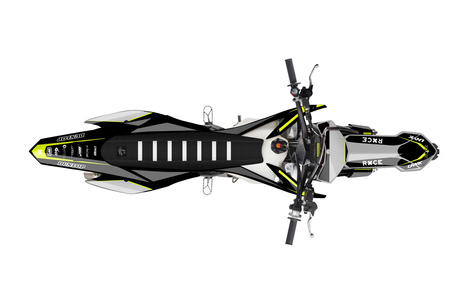 «Fluo» — готовый комплект графики серии Flow для KTM MX Graphic Kit KTM SX-F 250 2015. В комплекте: графика на бак и боковые облицовки, крылья (переднее и заднее), передний щиток, номерные таблички, защита вилки. Материал: ПВХ-винил 80 мкр с холодной ламинацией 300 мкр, общая толщина 380 мкр; покрытие глянцевое или матовое на выбор. Устойчив к UV-излучению, воде, бензину и мойке высокого давления. Клей акриловый на сольвентной основе — постоянный, для гибких пластиков. На простых поверхностях монтируется без нагрева; для сложных изгибов рекомендуем фен. Этот пресет можно заказать как есть или взять за основу в конструкторе: поменять цвета, добавить стартовый номер и свой бренд. Производство — 3–5 рабочих дней, доставка по России СДЭКом или Почтой, по СНГ — курьерскими службами.