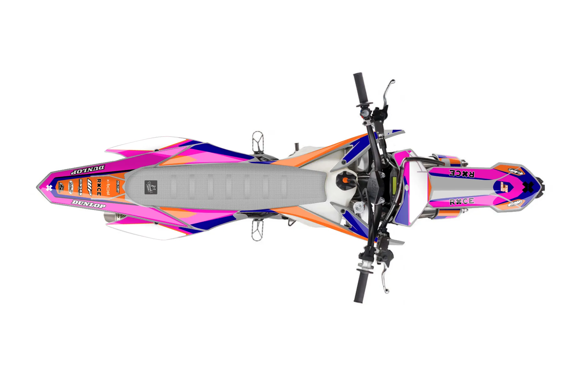 «ktm15» — готовый комплект графики серии Flow для KTM MX Graphic Kit KTM SX-F 250 2015. В комплекте: графика на бак и боковые облицовки, крылья (переднее и заднее), передний щиток, номерные таблички, защита вилки. Материал: ПВХ-винил 80 мкр с холодной ламинацией 300 мкр, общая толщина 380 мкр; покрытие глянцевое или матовое на выбор. Устойчив к UV-излучению, воде, бензину и мойке высокого давления. Клей акриловый на сольвентной основе — постоянный, для гибких пластиков. На простых поверхностях монтируется без нагрева; для сложных изгибов рекомендуем фен. Этот пресет можно заказать как есть или взять за основу в конструкторе: поменять цвета, добавить стартовый номер и свой бренд. Производство — 3–5 рабочих дней, доставка по России СДЭКом или Почтой, по СНГ — курьерскими службами.