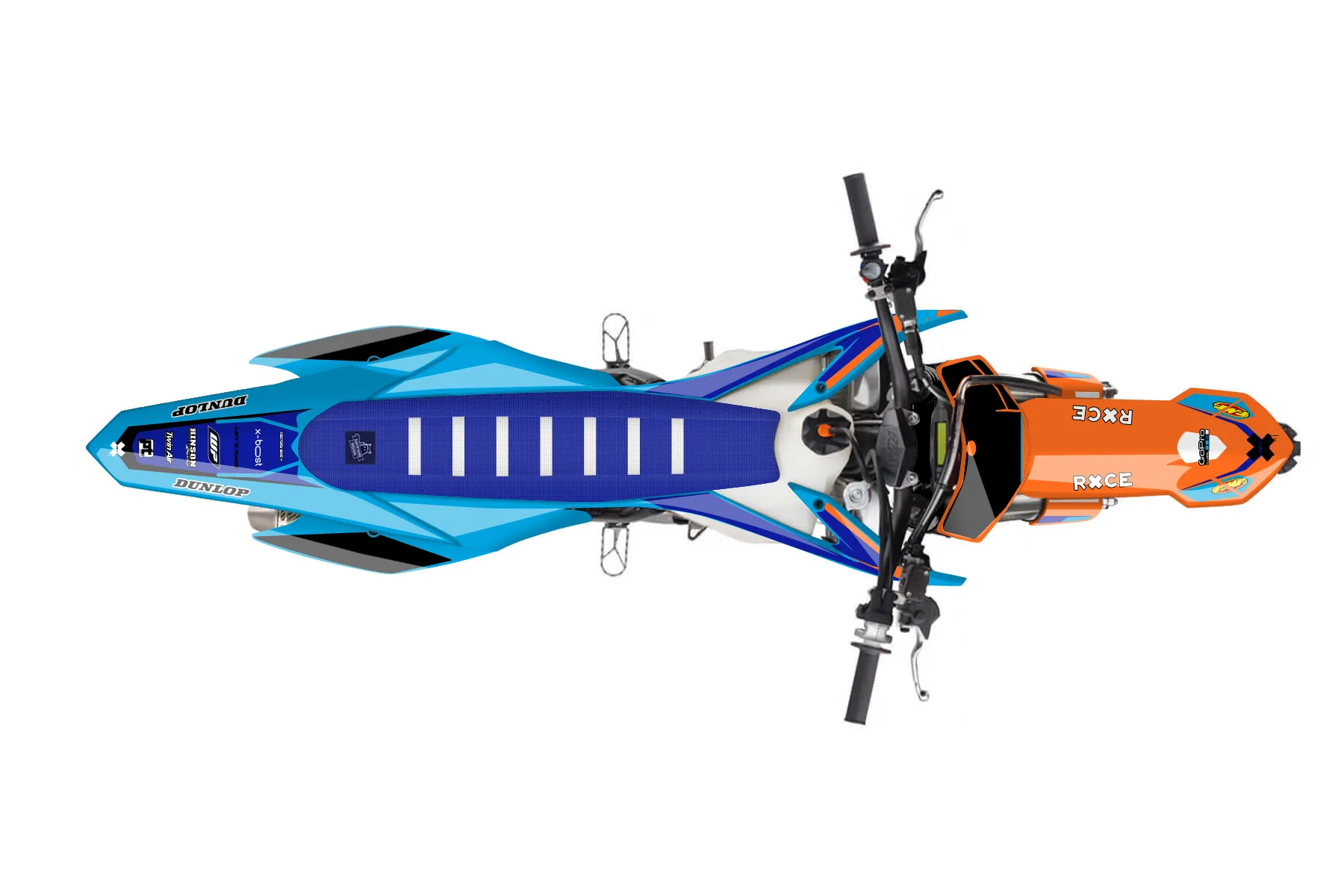 «Signature» — готовый комплект графики серии Flow для KTM MX Graphic Kit KTM SX-F 250 2015. В комплекте: графика на бак и боковые облицовки, крылья (переднее и заднее), передний щиток, номерные таблички, защита вилки. Материал: ПВХ-винил 80 мкр с холодной ламинацией 300 мкр, общая толщина 380 мкр; покрытие глянцевое или матовое на выбор. Устойчив к UV-излучению, воде, бензину и мойке высокого давления. Клей акриловый на сольвентной основе — постоянный, для гибких пластиков. На простых поверхностях монтируется без нагрева; для сложных изгибов рекомендуем фен. Этот пресет можно заказать как есть или взять за основу в конструкторе: поменять цвета, добавить стартовый номер и свой бренд. Производство — 3–5 рабочих дней, доставка по России СДЭКом или Почтой, по СНГ — курьерскими службами.